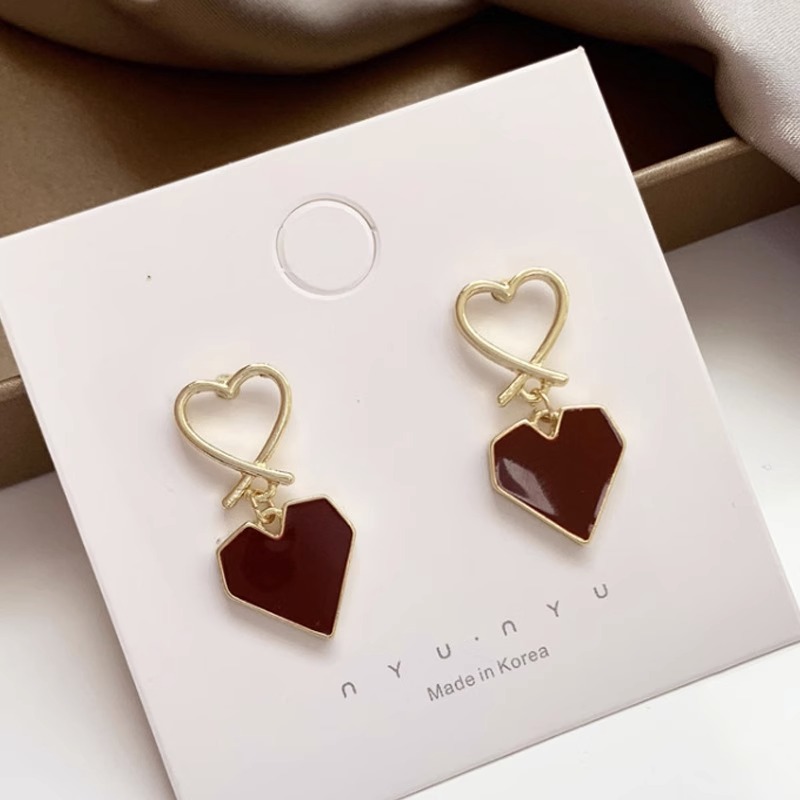 彤彤兔 S925银针韩版酒红色爱心耳钉潮高级气质简约百搭春夏耳饰