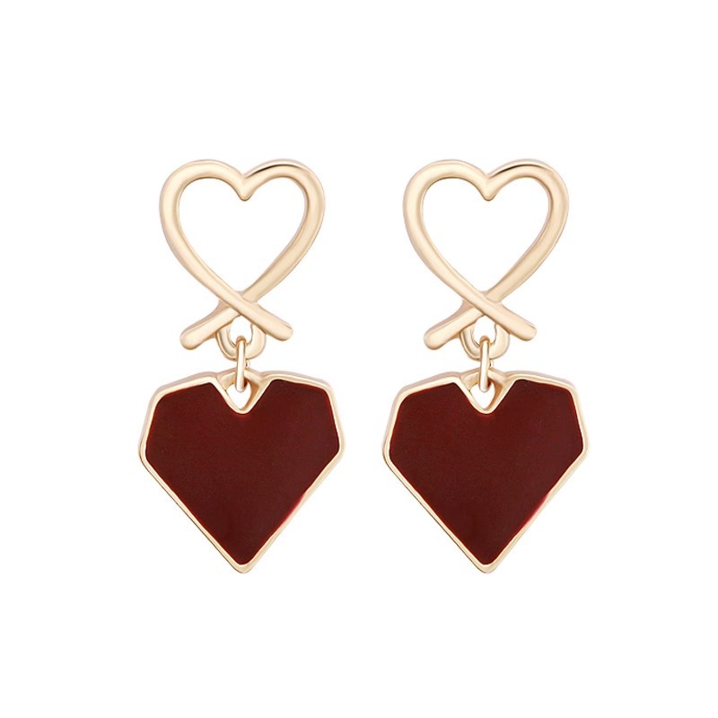 商品名称:彤彤兔 S925银针韩版酒红色爱心耳钉潮高级气质简约百搭春夏耳饰