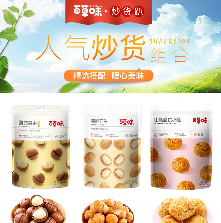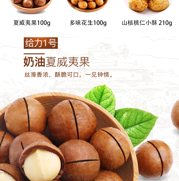 商品名称:百草味 坚果炒货组合410g夏威夷果花生山核桃小酥零食礼包网红下午茶休闲充饥夜宵