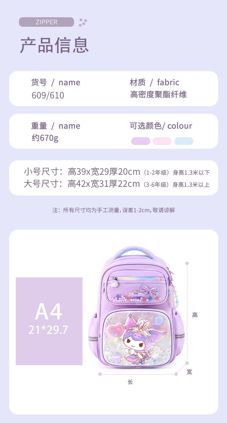 商品名称:库洛米新款女童小学生书包女孩一二三到六年级轻便减负护脊女儿童双肩背包