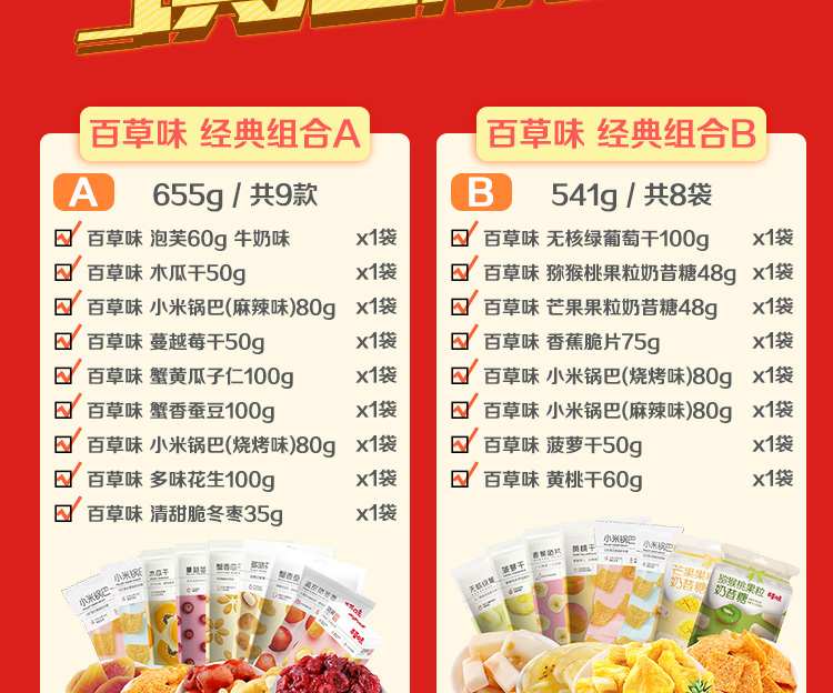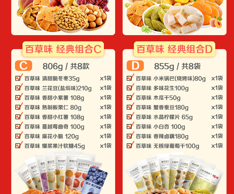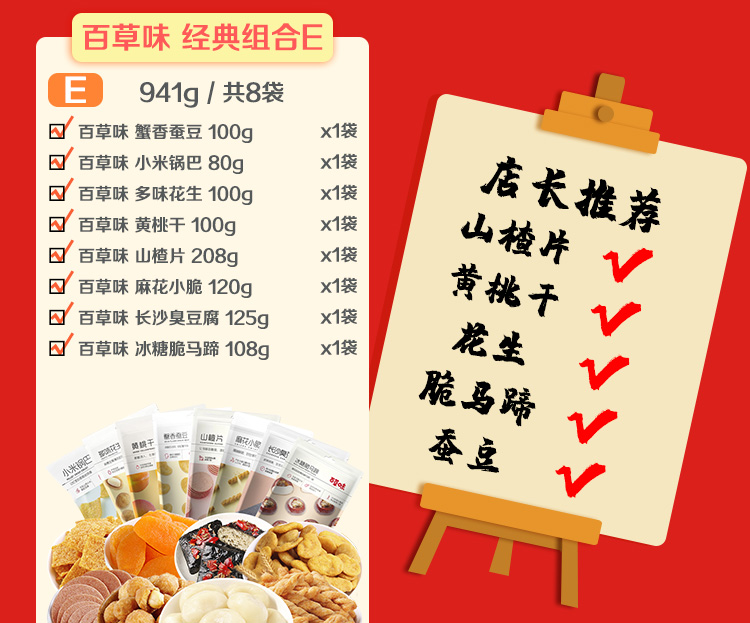 商品名称:百草味经典零食组合泡芙瓜子仁蚕豆坚果零食大礼包网红下午茶休闲充饥夜宵大礼包