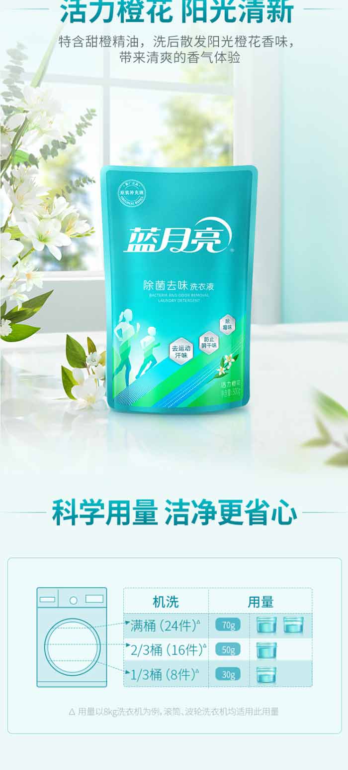 商品名称:蓝月亮 除菌去味(活力橙花)洗衣液500g/袋杀菌洗衣液儿童婴儿可用