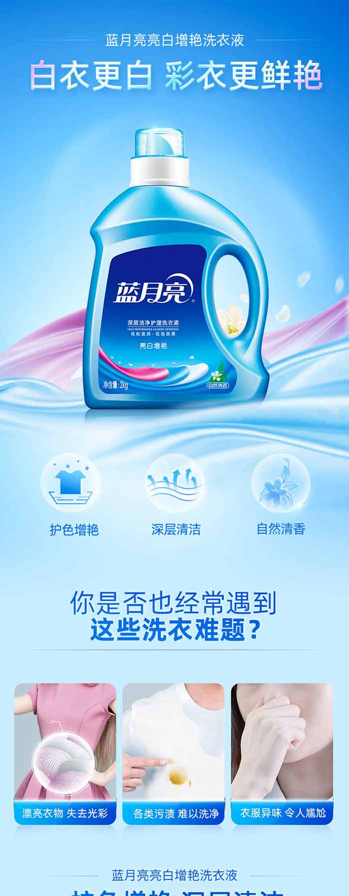 商品名称:蓝月亮 亮白增艳洗衣液(自然清香)2kg/瓶成人儿童洗衣液