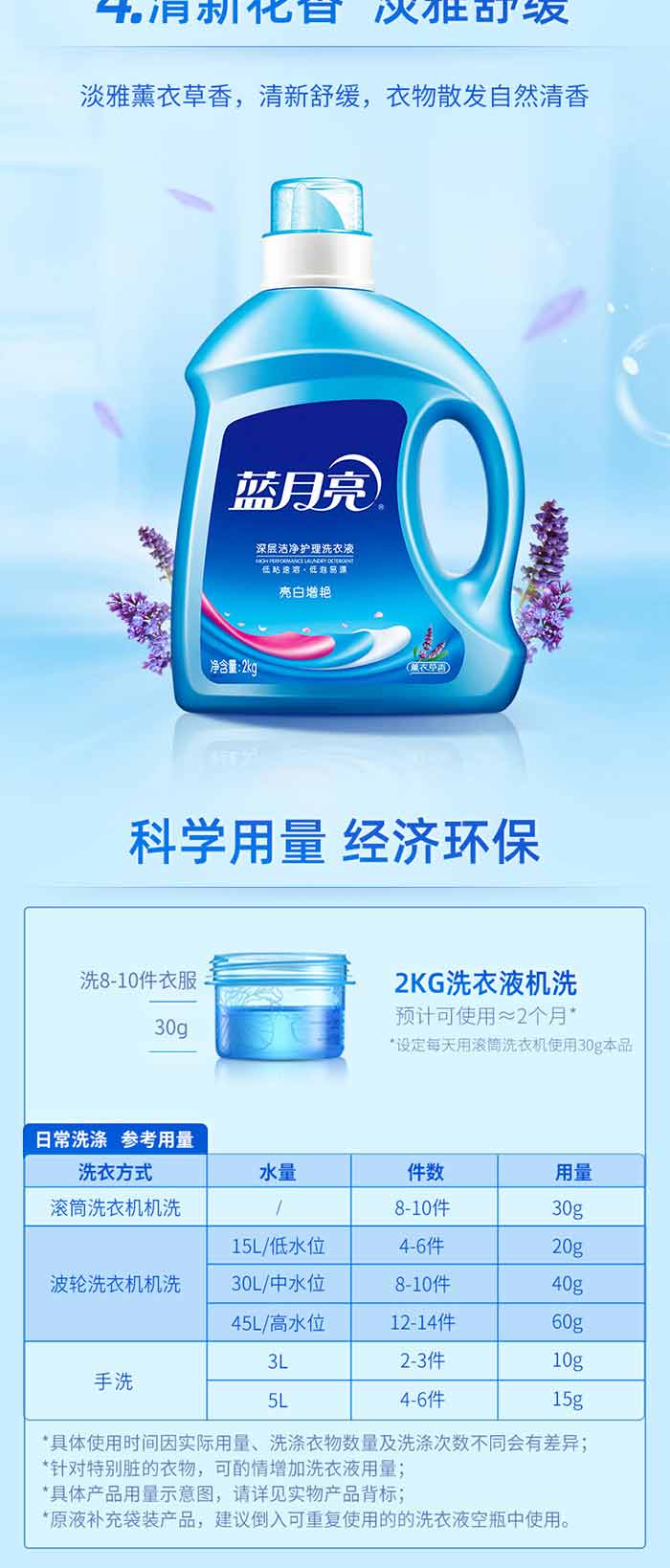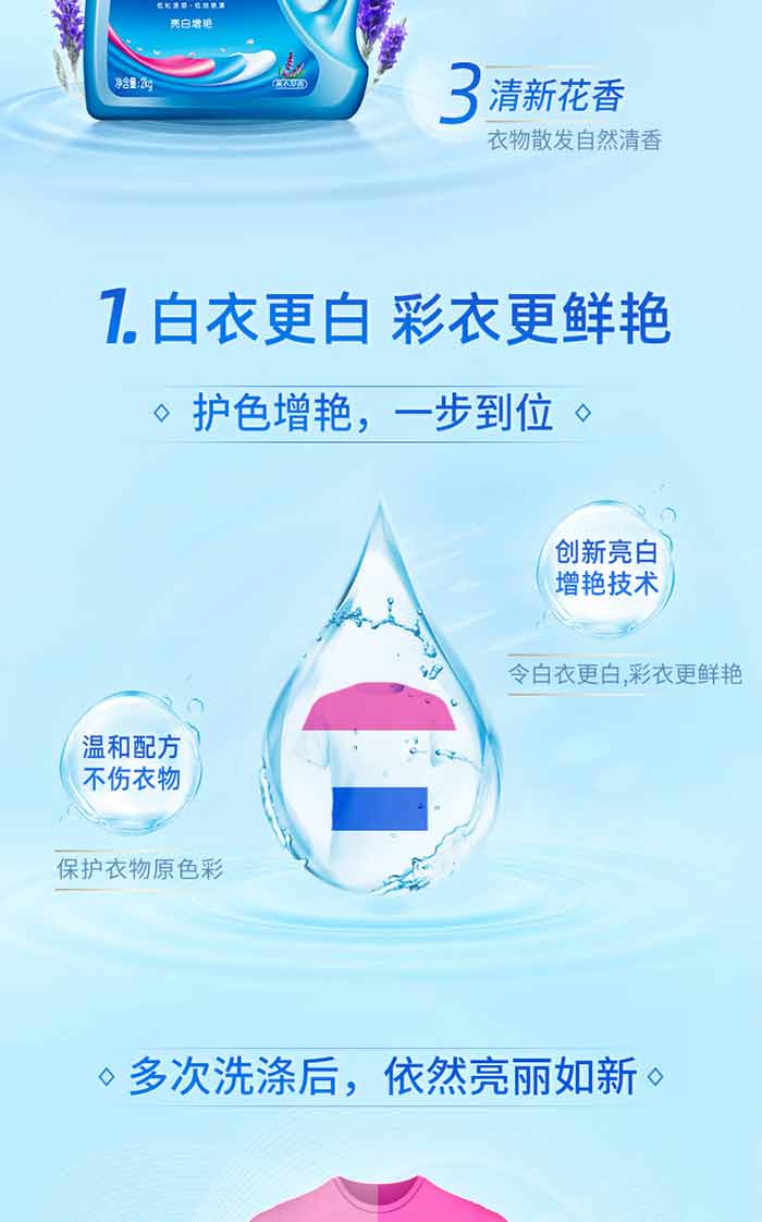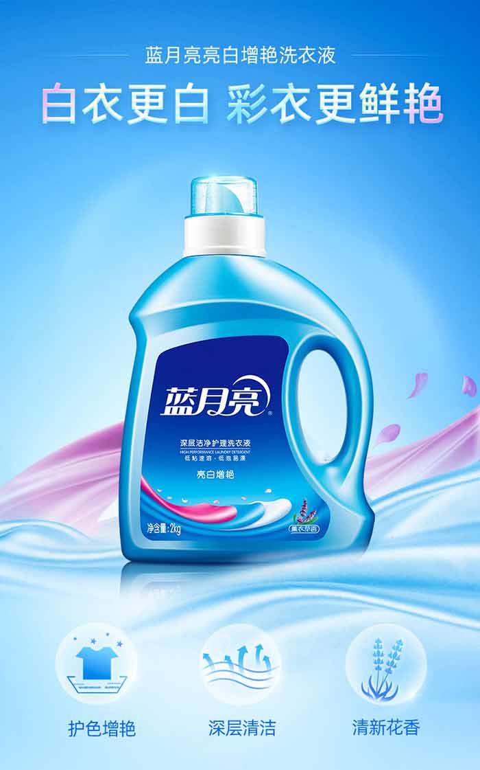 商品名称:蓝月亮 亮白增艳洗衣液(薰衣草)2kg/瓶成人儿童洗衣液