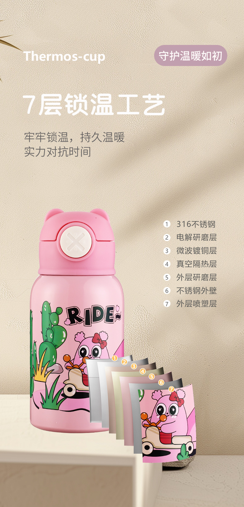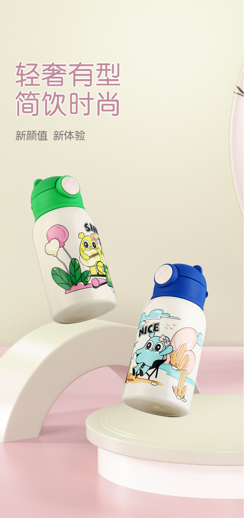 商品名称:新品316不锈钢食品级儿童保温杯一杯双盖弹跳吸管杯学生幼儿园用便携运动水壶