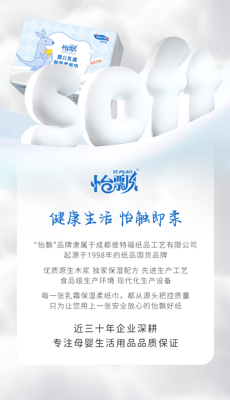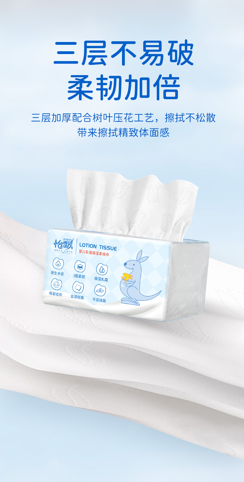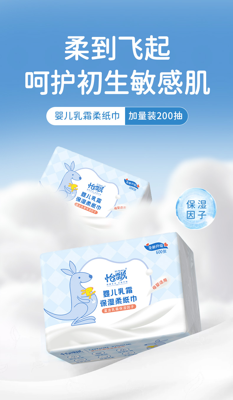 【品牌直供 可心柔同款】怡飘婴儿乳霜柔纸巾宝宝专用保湿云柔巾200抽*6包