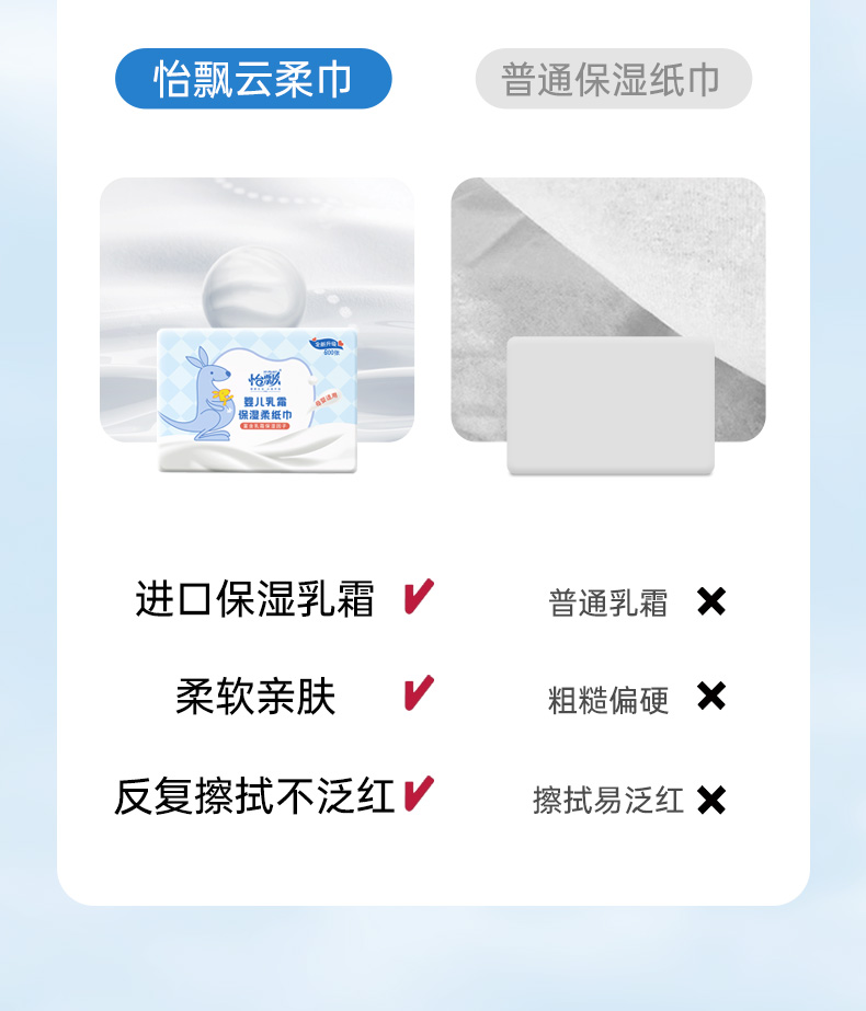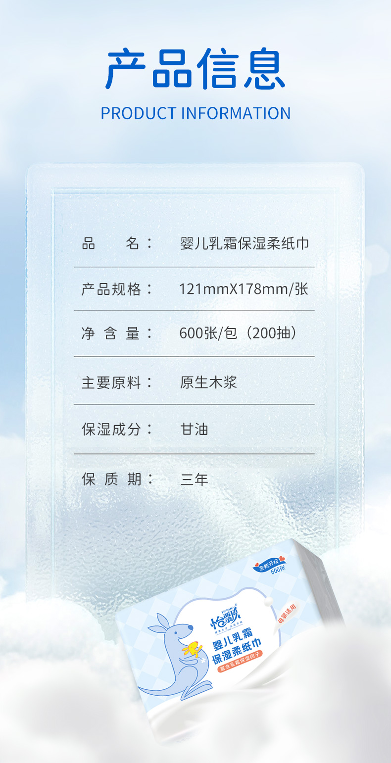 商品名称:【品牌直供 可心柔同款】怡飘婴儿乳霜柔纸巾宝宝专用保湿云柔巾200抽*6包