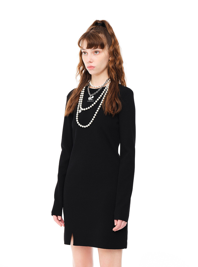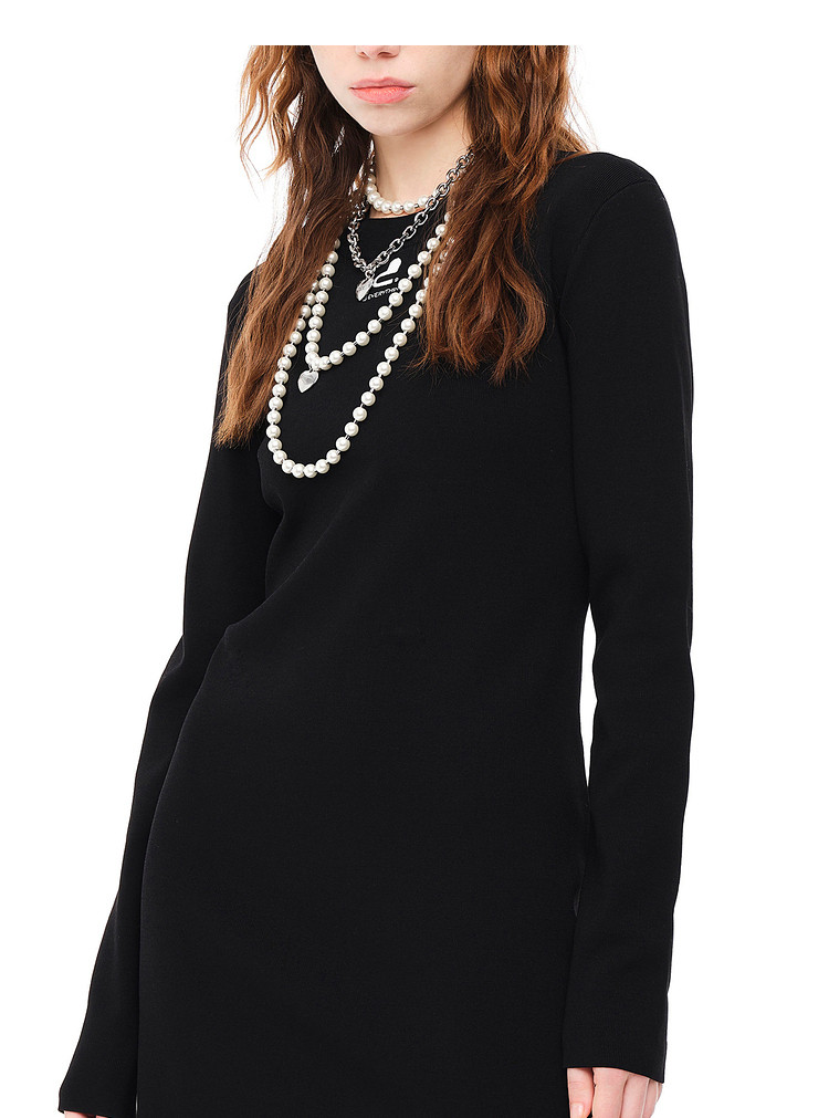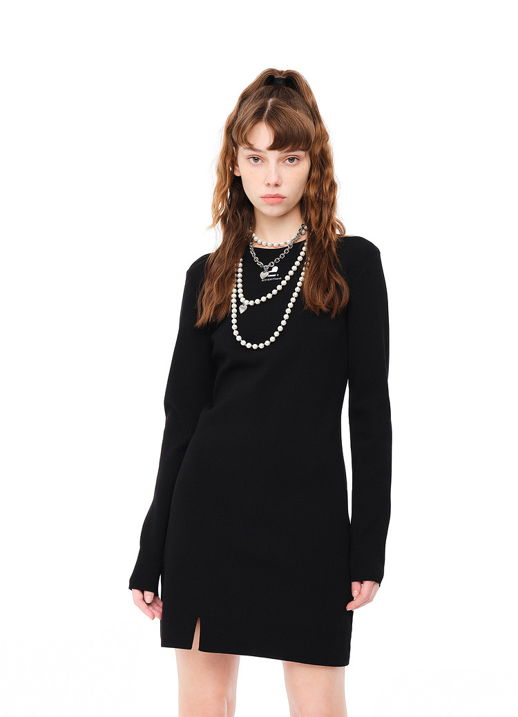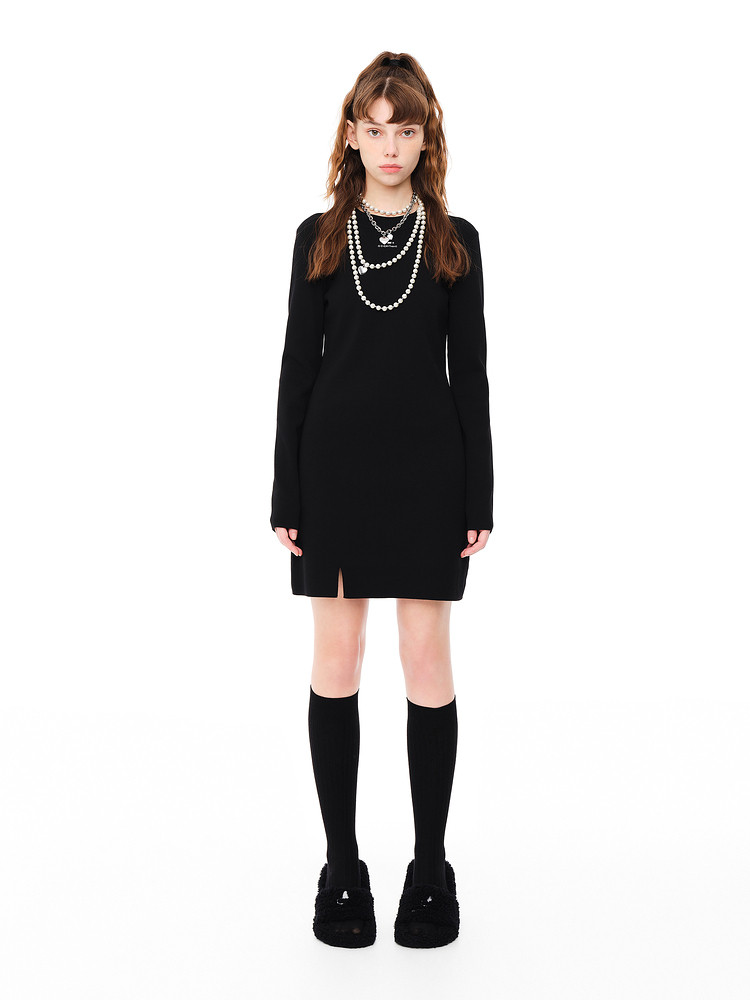 地素 秋冬甜酷泡泡袖开叉针织连衣裙女 789515
