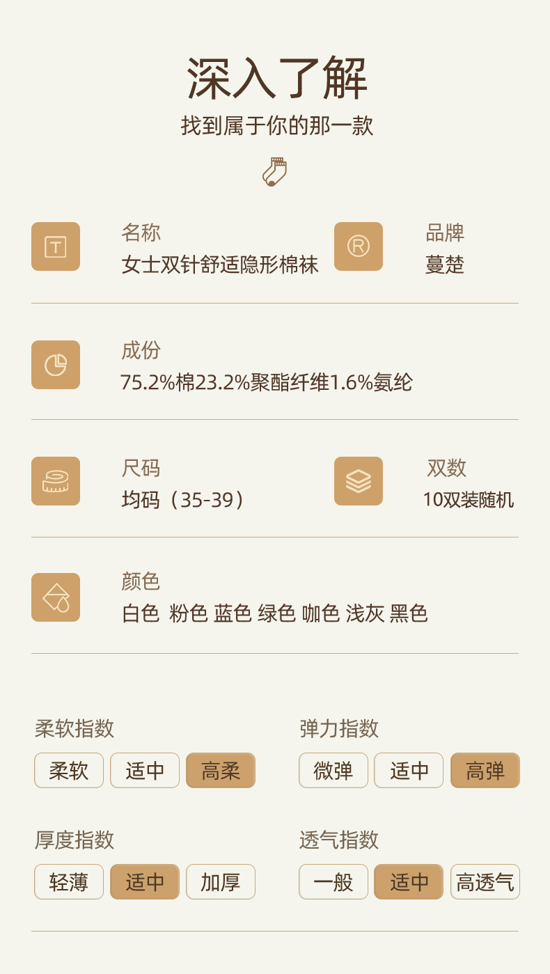 商品名称:【特价秒杀】10双装蔓楚女士双针舒适隐形棉袜夏天透气短袜船袜硅胶防滑休闲袜子