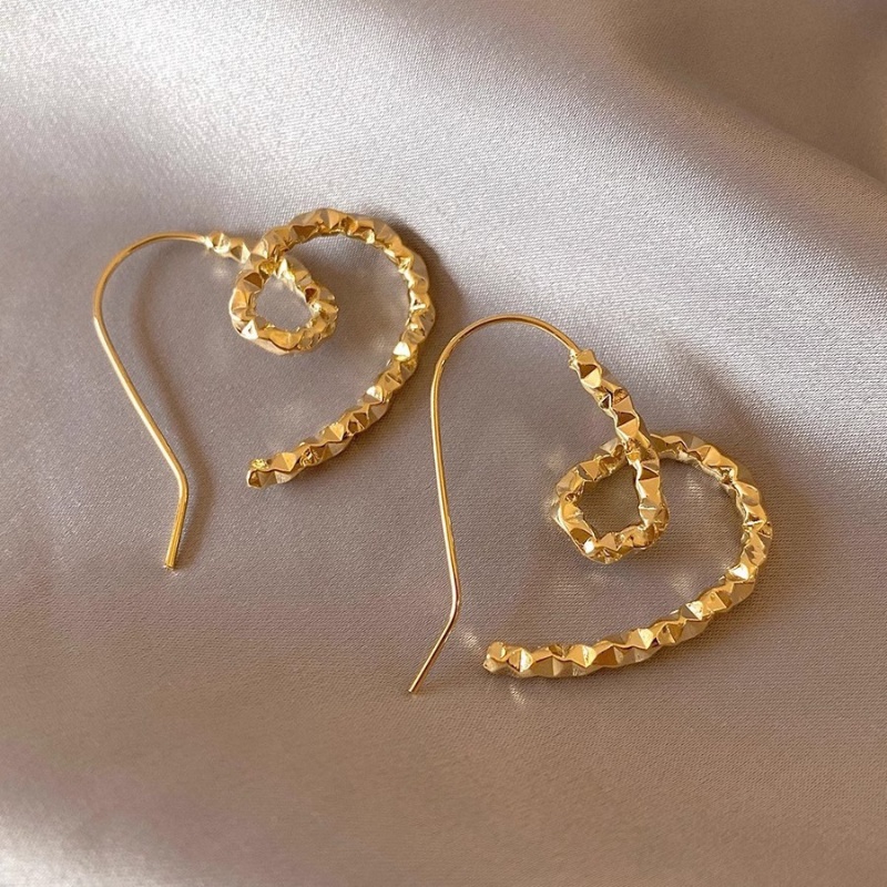 彤彤兔 欧美风不规则菱格纹扭曲爱心耳环小众设计独特法式高级感个性耳饰