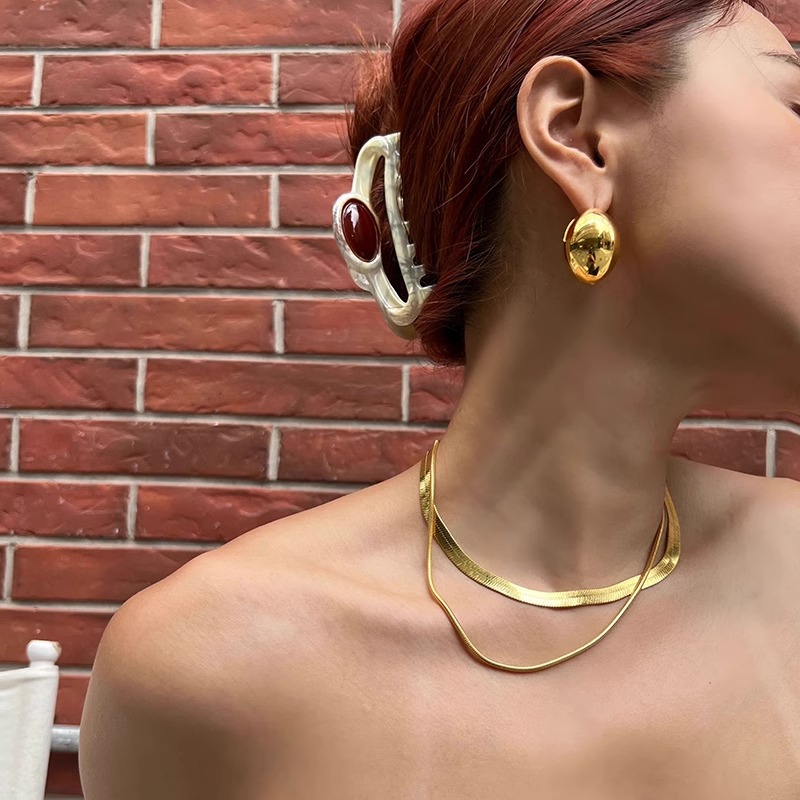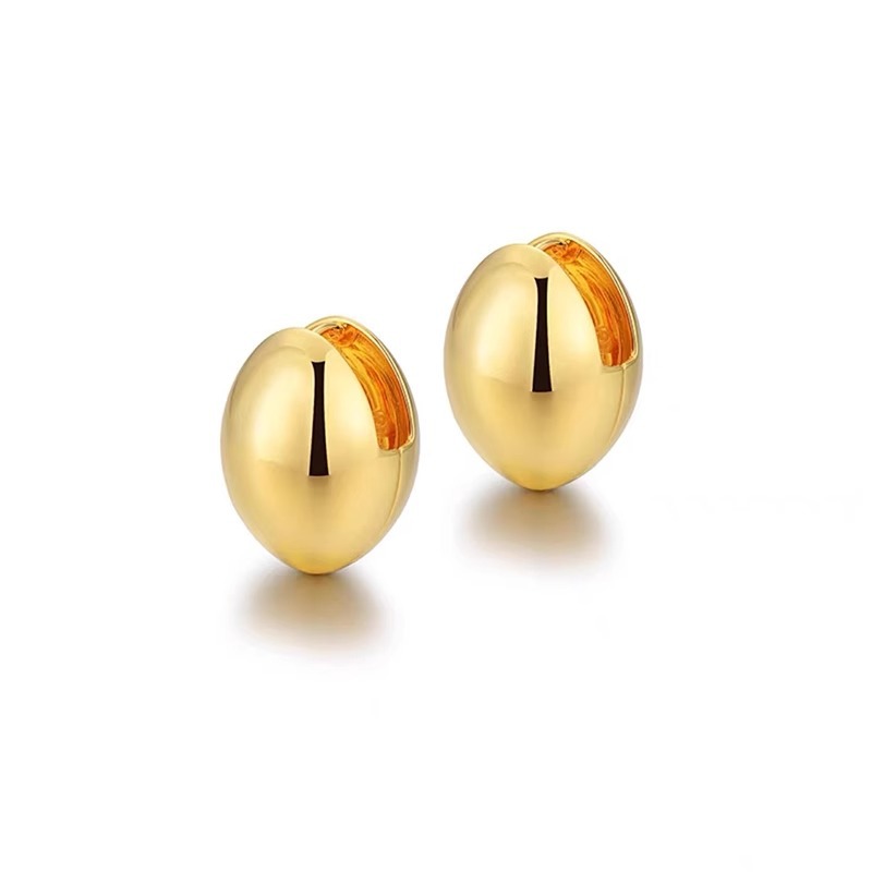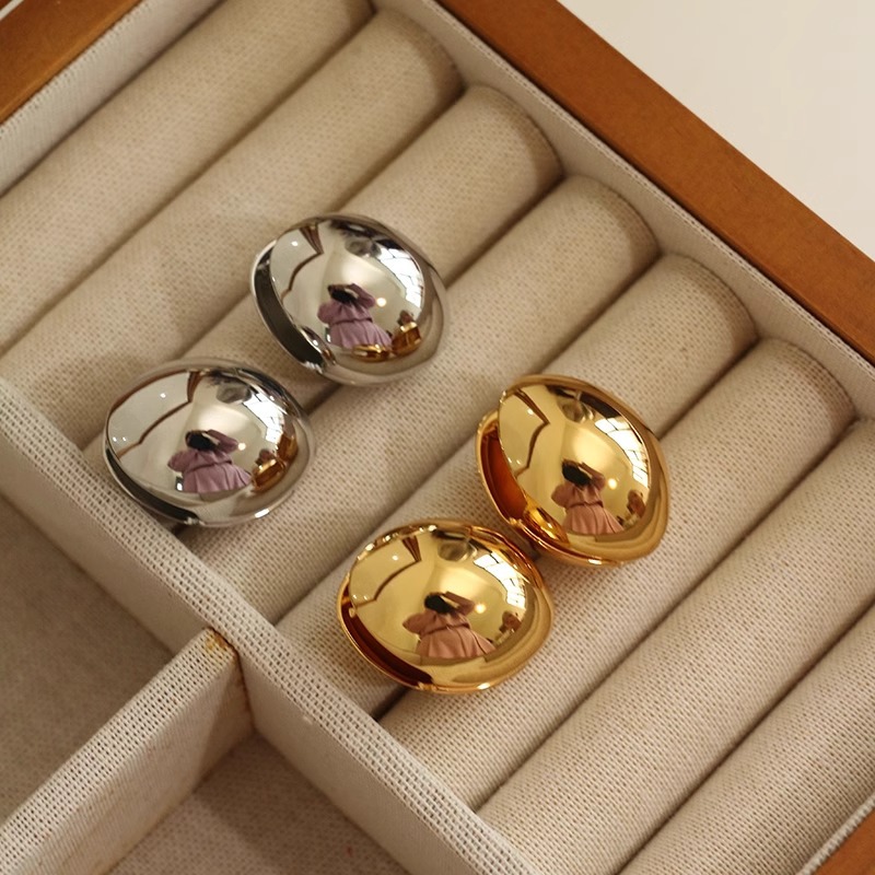 彤彤兔 时尚欧美风夸张金属光面金色耳环女椭圆球耳饰小众设计高级感耳扣