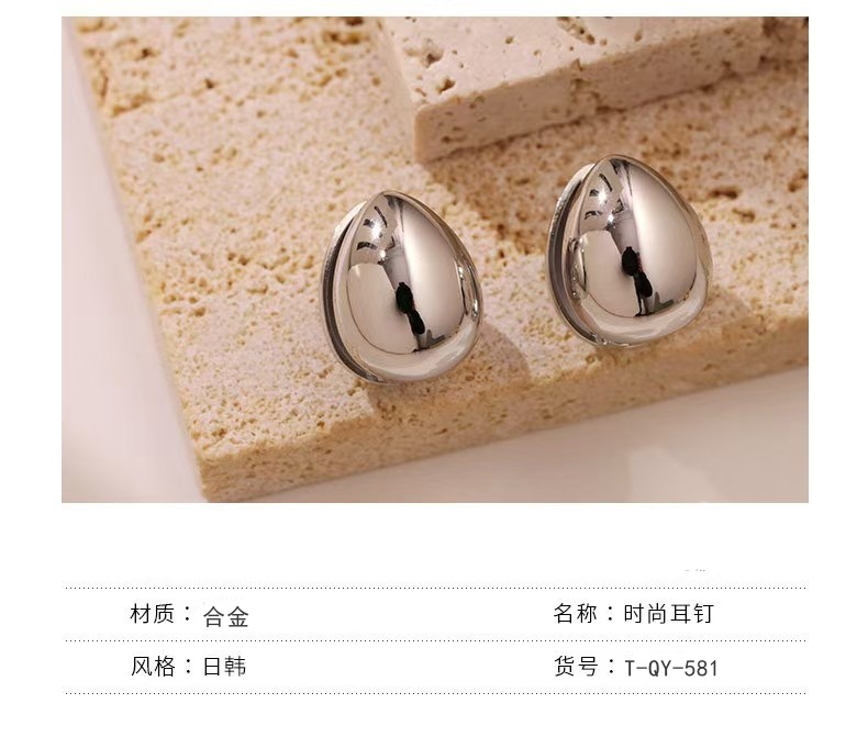 商品名称:彤彤兔 时尚欧美风夸张金属光面金色耳环女椭圆球耳饰小众设计高级感耳扣