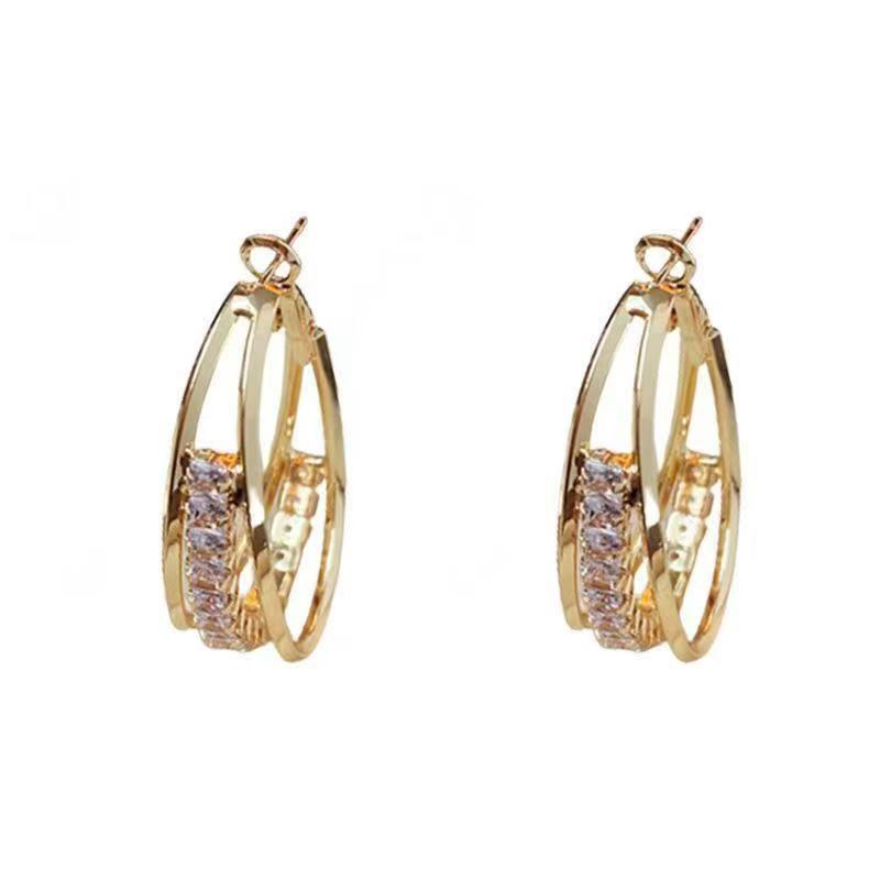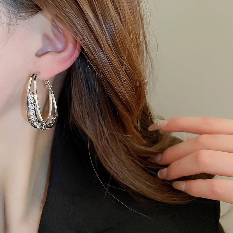 彤彤兔 S925银针椭圆形镶钻耳圈轻奢高级气质感耳环爆款耳饰