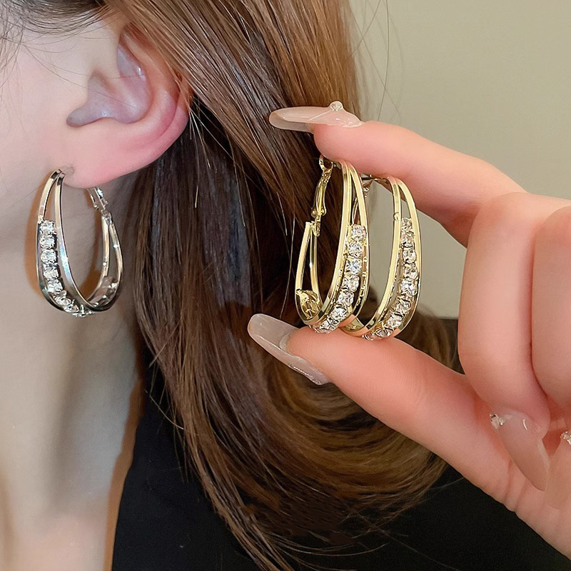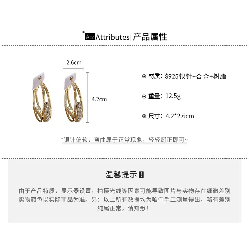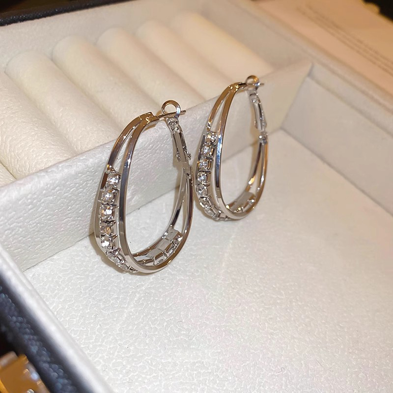商品名称:彤彤兔 S925银针椭圆形镶钻耳圈轻奢高级气质感耳环爆款耳饰