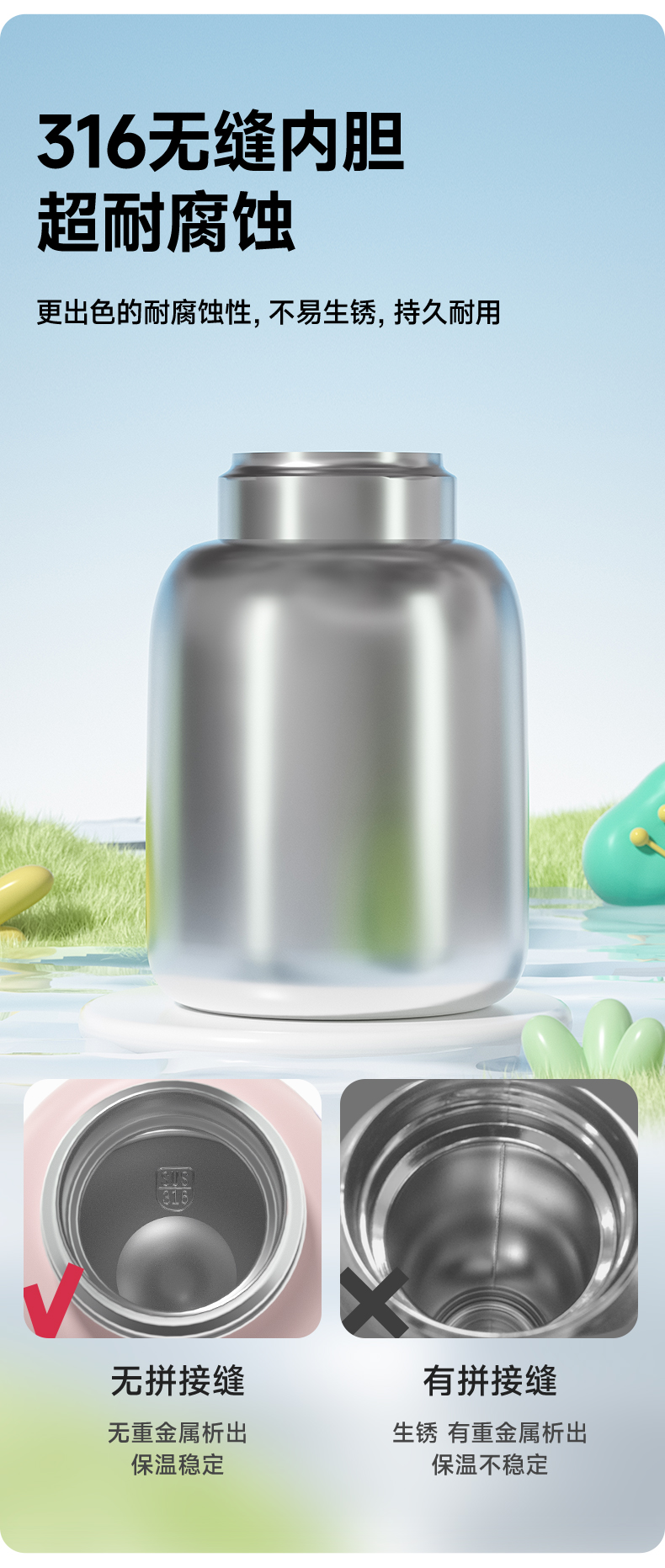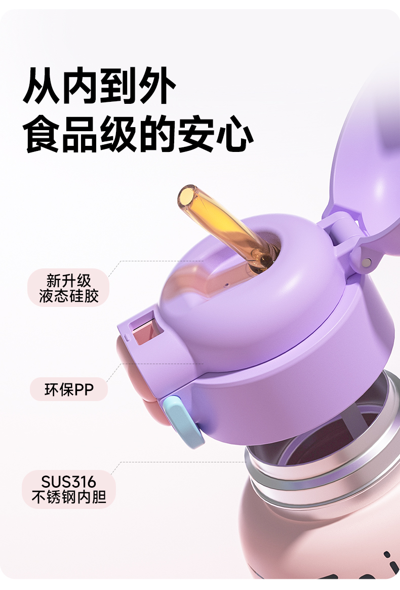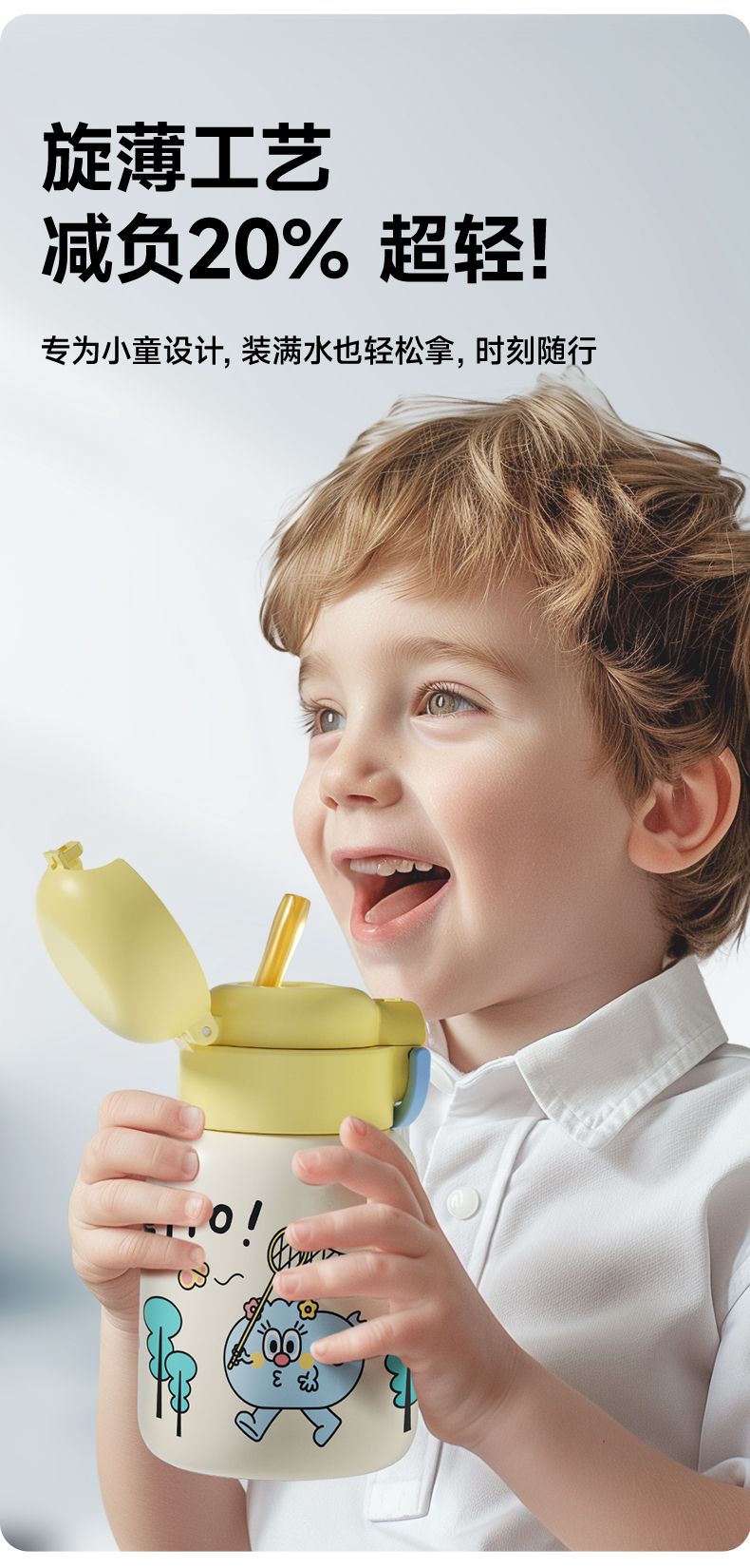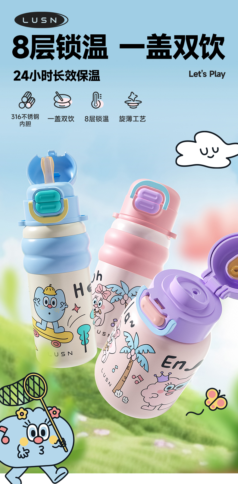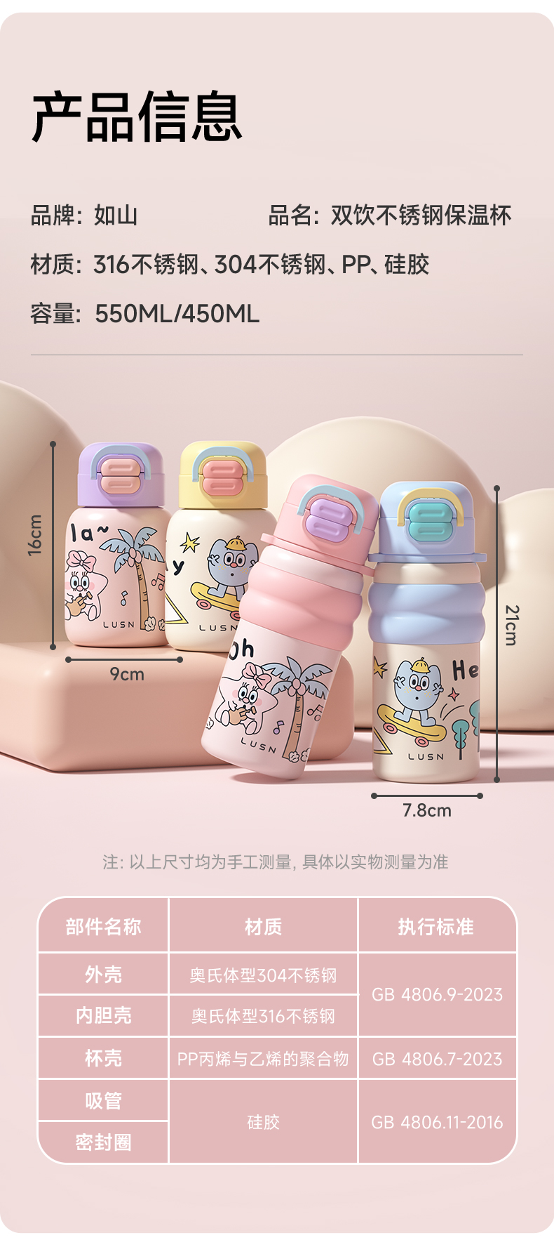 商品名称:如山儿童316不锈钢保温杯女高颜值水杯宝宝直饮便携随行双饮杯子