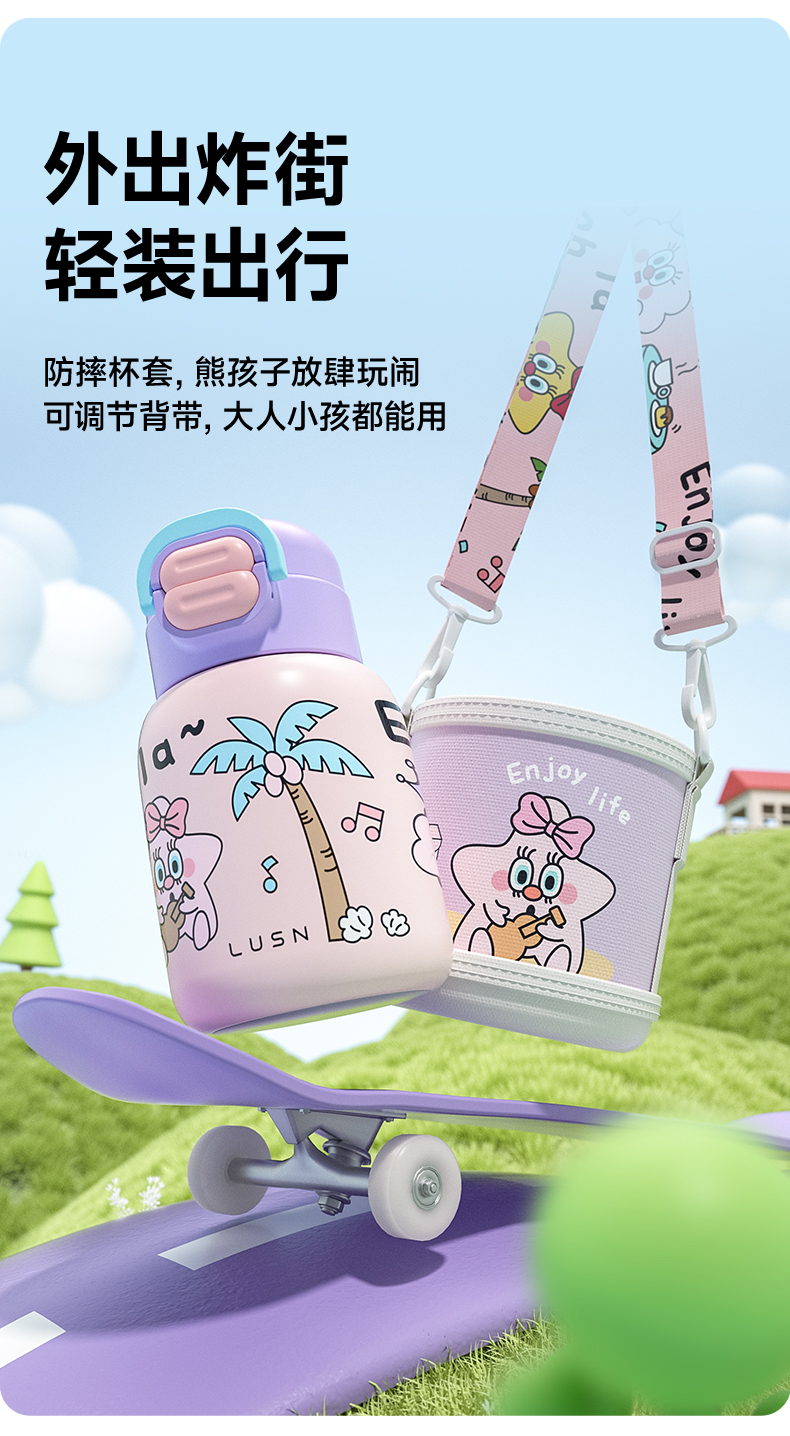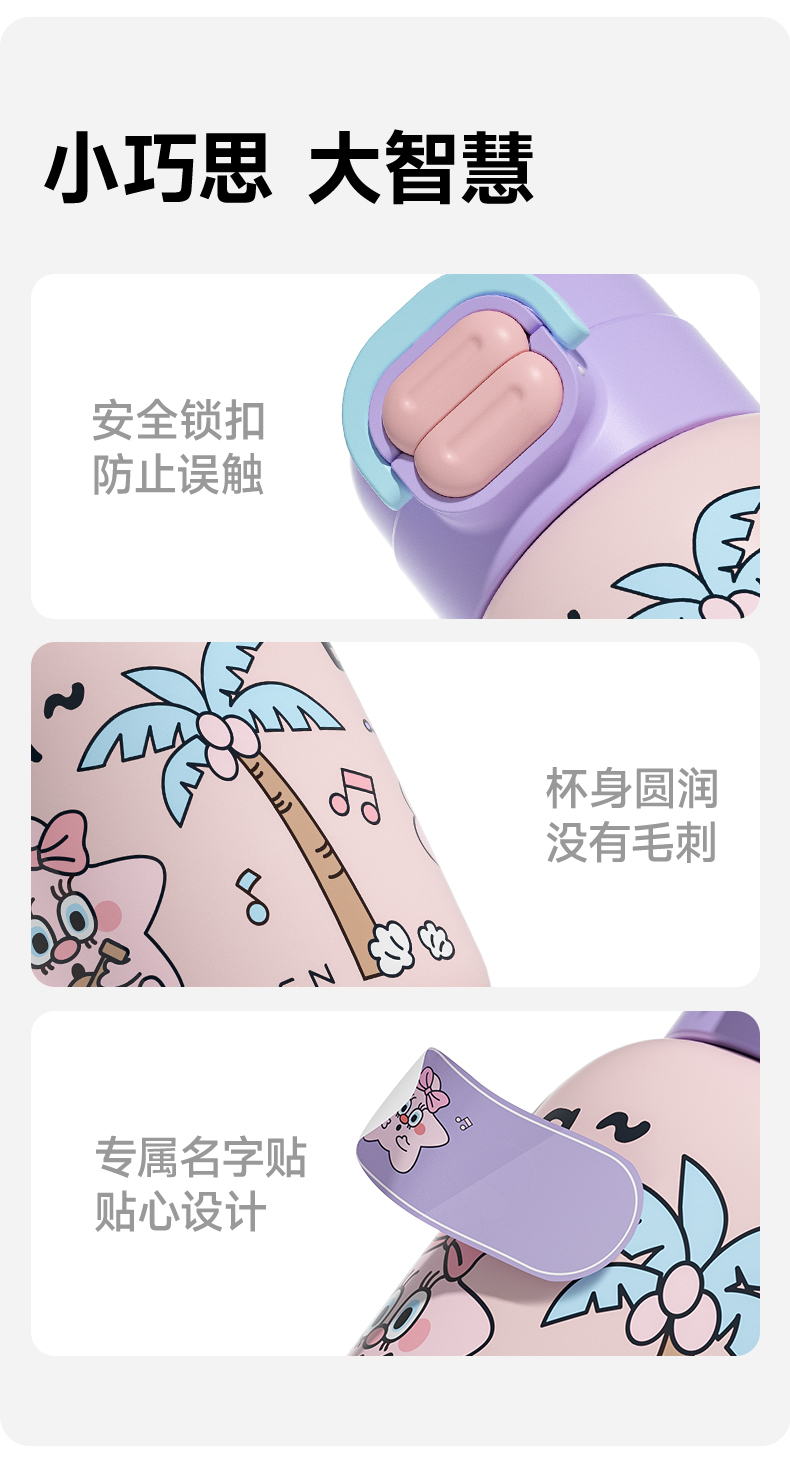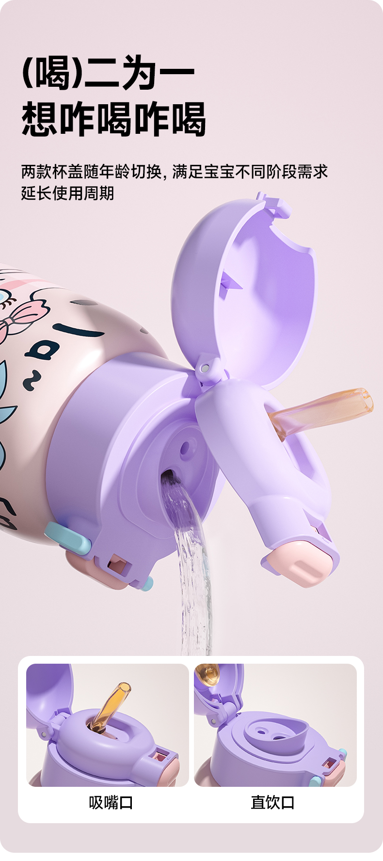 如山儿童316不锈钢保温杯女高颜值水杯宝宝直饮便携随行双饮杯子