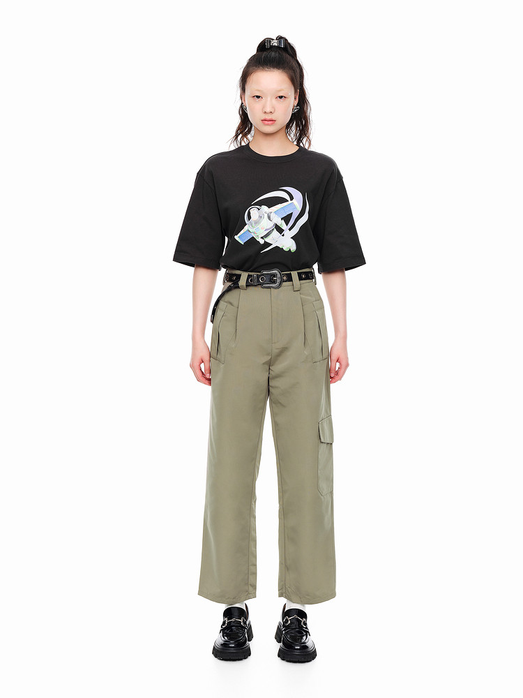 地素春秋帅气潮流休闲宽松工装直筒阔腿长裤女裤子 909259