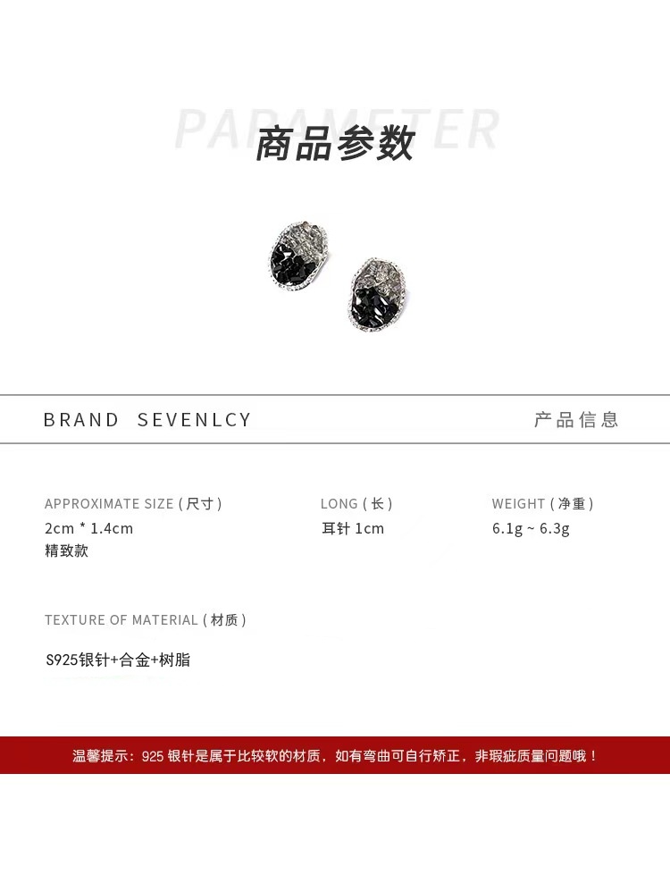商品名称:彤彤兔 S925银针独特方圆黑色耳钉爆款轻奢小众高级感气质耳环