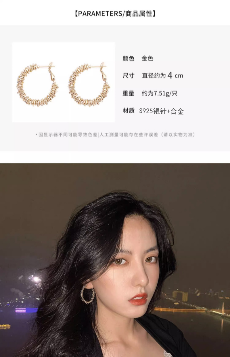 商品名称:彤彤兔 S925银针百搭圈圈耳环韩国网红女耳环个性夸张时尚耳钉女简约耳饰
