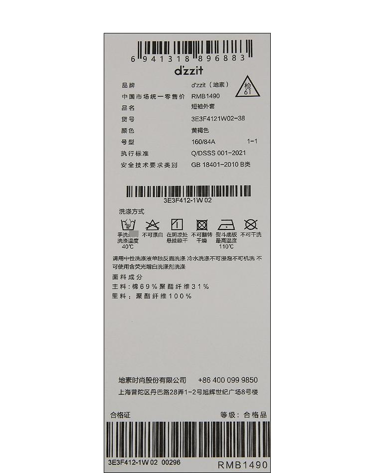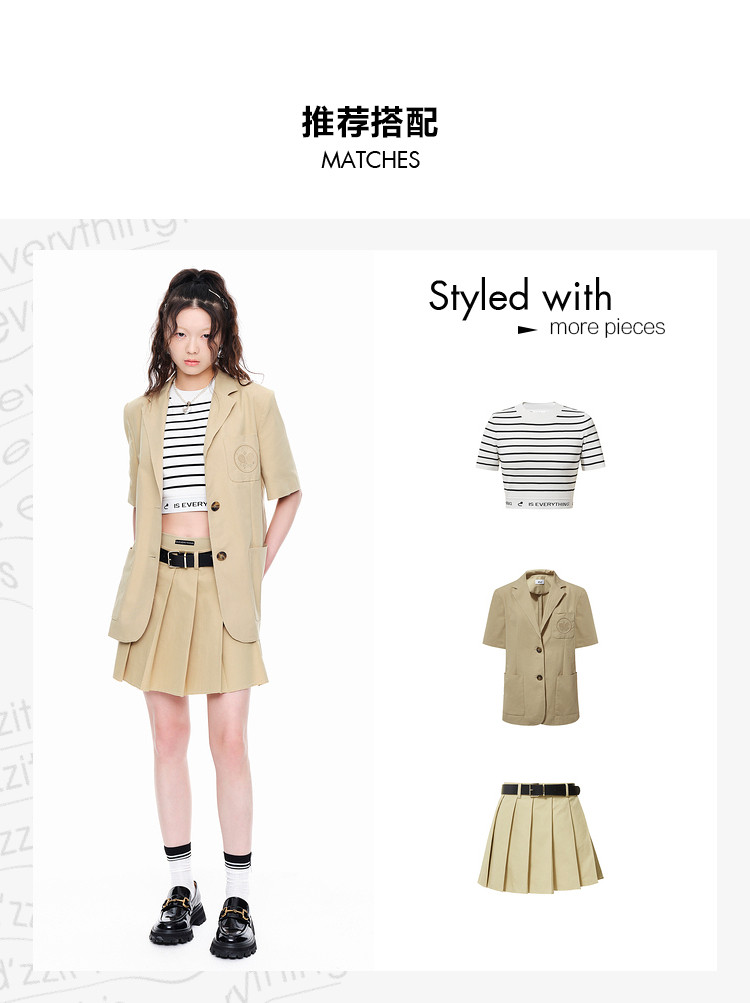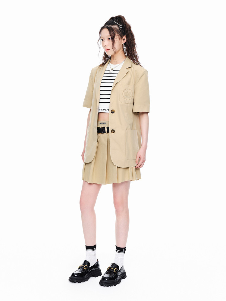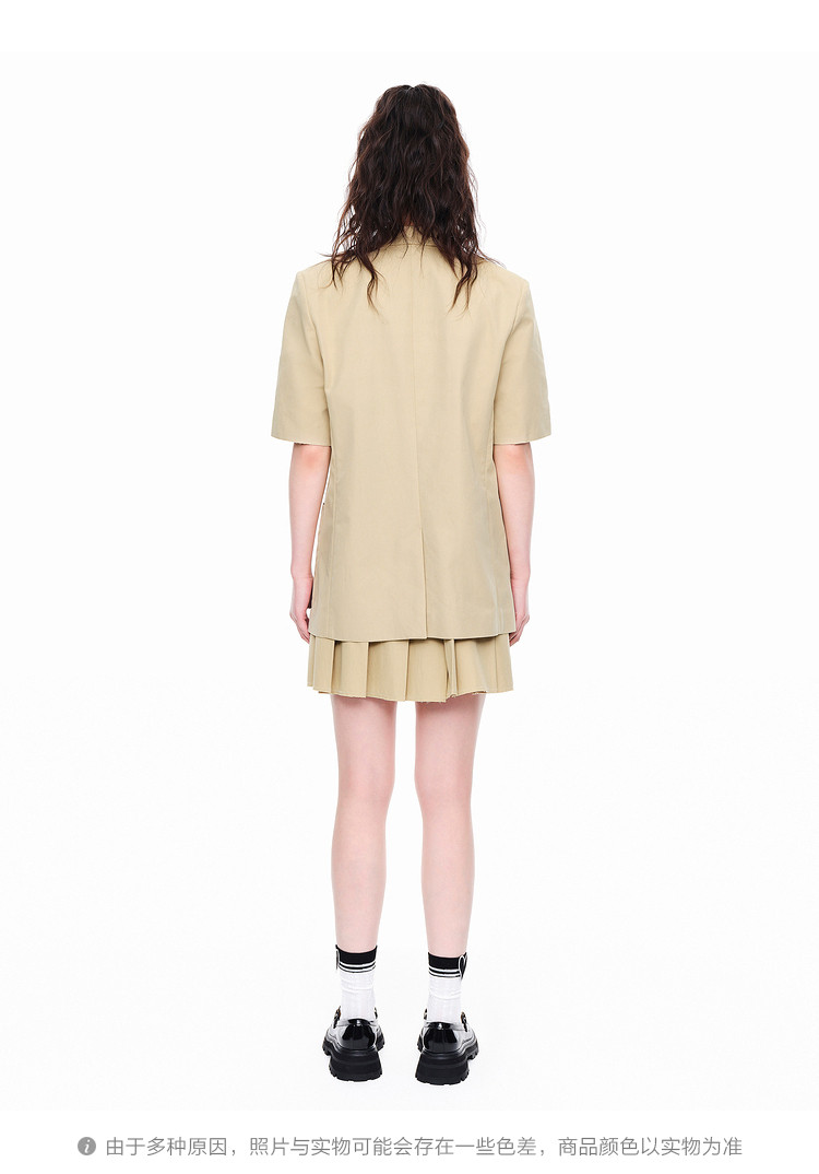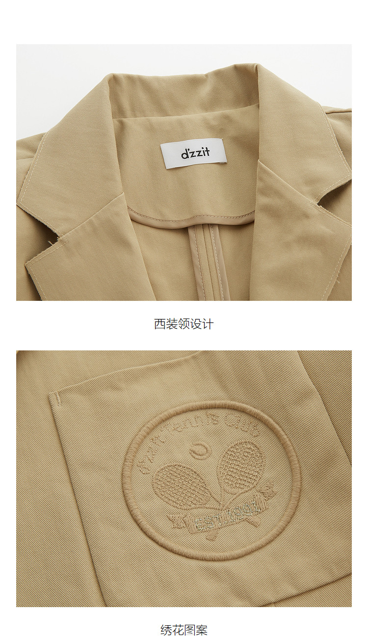 商品名称:地素春秋复古通勤口袋刺绣宽松短袖垫肩西装外套女 975499