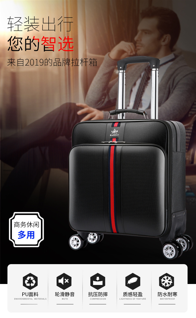商品名称:彤彤兔 商务行李箱男士18寸小登机箱轻便软箱英伦风拉杆箱密码旅行箱皮箱