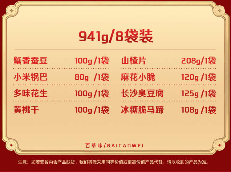 商品名称:百草味暖心小礼941g山楂片麻花臭豆腐脆马蹄坚果大礼包网红下午茶休闲充饥夜宵