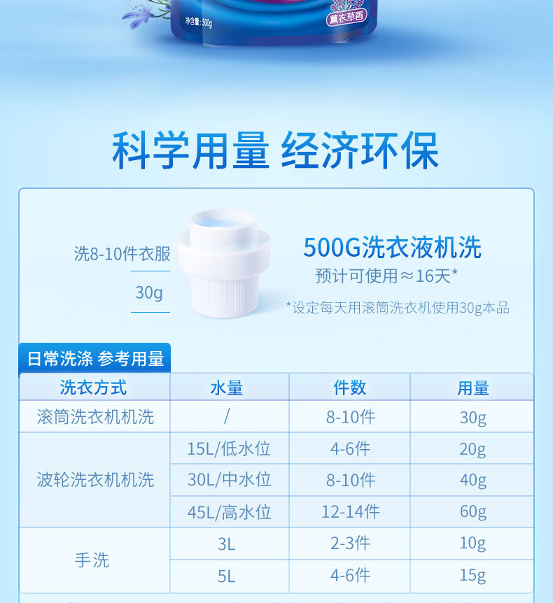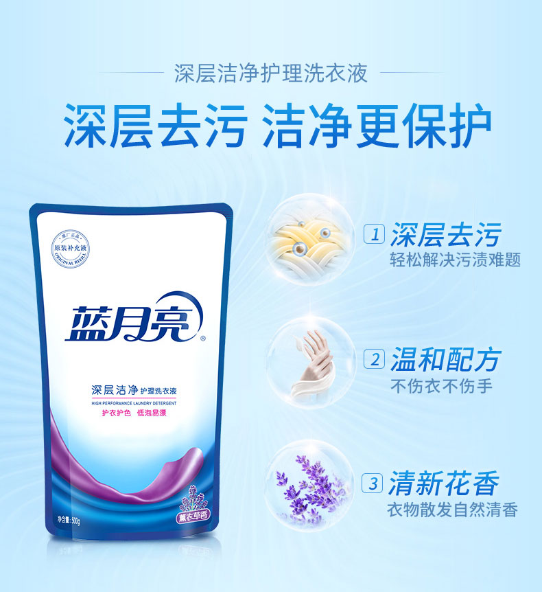 商品名称:蓝月亮 深层洁净洗衣液(薰衣草)袋装500g成人内衣内裤儿童婴儿清洗剂