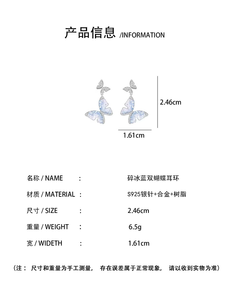 商品名称:彤彤兔 S925银针水晶蝴蝶耳环爆款小众设计高级感圆脸适合的耳饰
