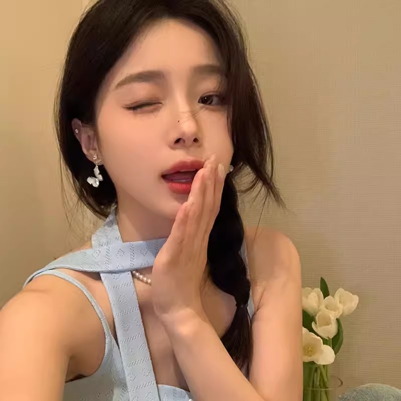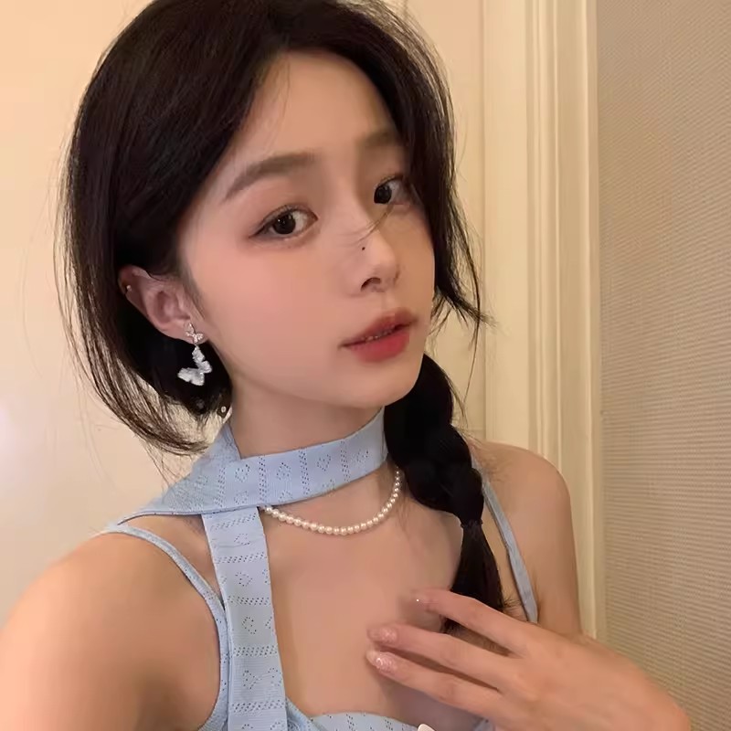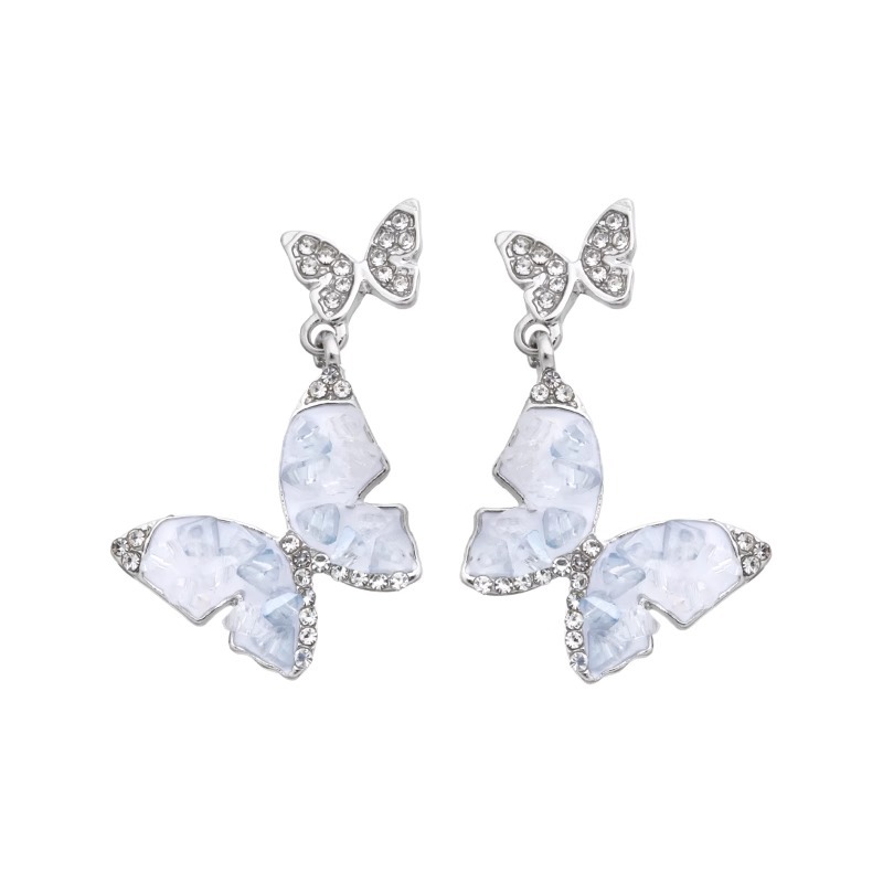 彤彤兔 S925银针水晶蝴蝶耳环爆款小众设计高级感圆脸适合的耳饰