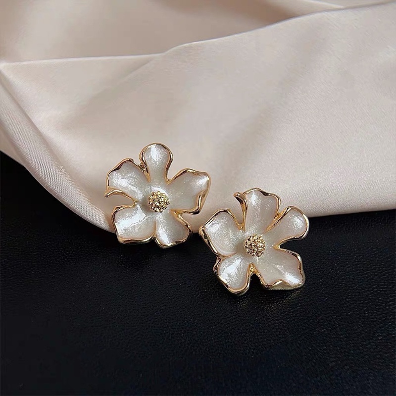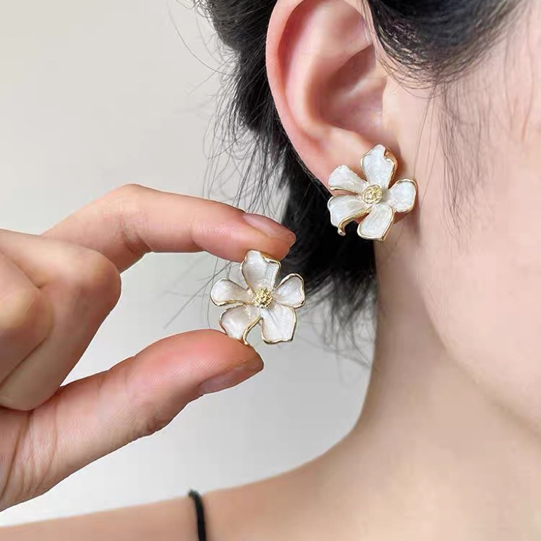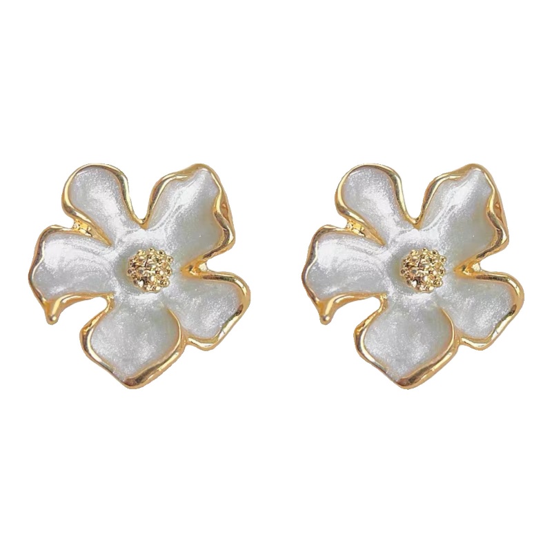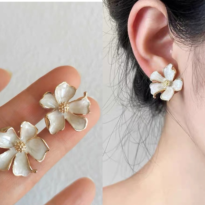 彤彤兔 S925银针花迹温柔风栀子花朵耳钉女小香风高级感滴釉耳饰夏季耳钉