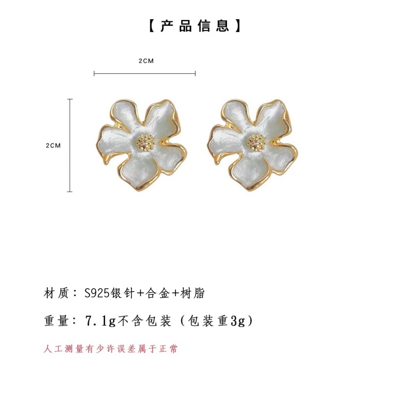 商品名称:彤彤兔 S925银针花迹温柔风栀子花朵耳钉女小香风高级感滴釉耳饰夏季耳钉