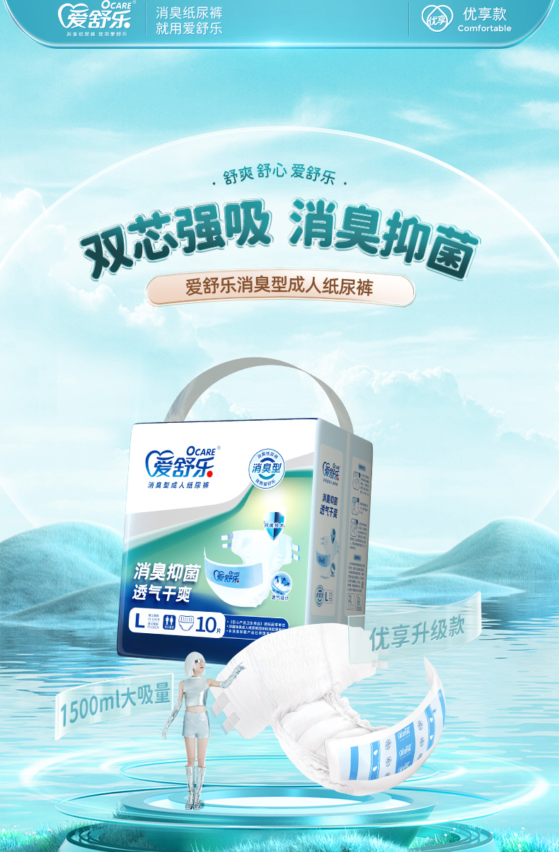 爱舒乐优享成人纸尿裤老人用尿不湿男女通用尿裤孕妇尿片M/L/XL码安睡裤