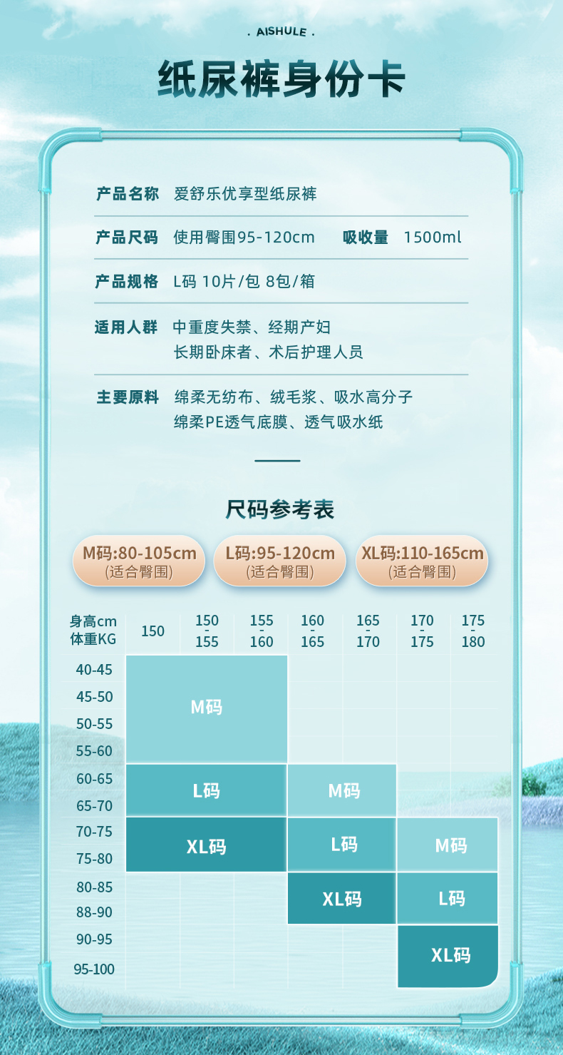 商品名称:爱舒乐优享成人纸尿裤老人用尿不湿男女通用尿裤孕妇尿片M/L/XL码安睡裤