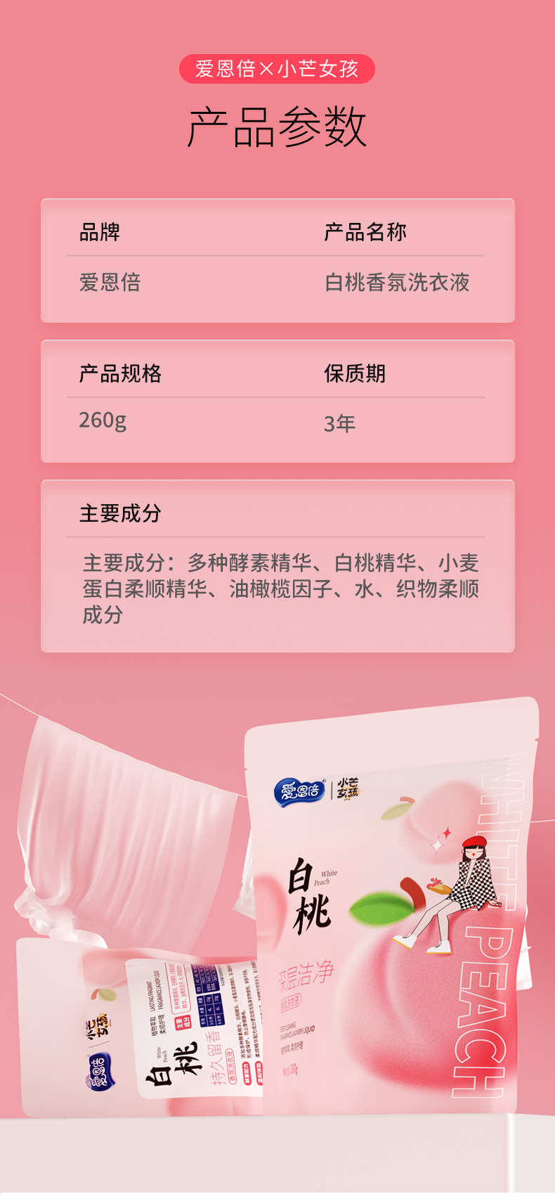 商品名称:爱恩倍袋装洗衣液内衣内裤成人清洗剂去污皂液婴儿儿童洗衣专用260g 可做赠品