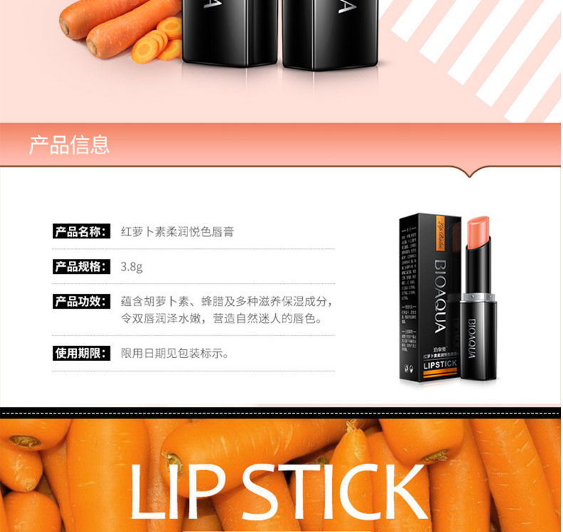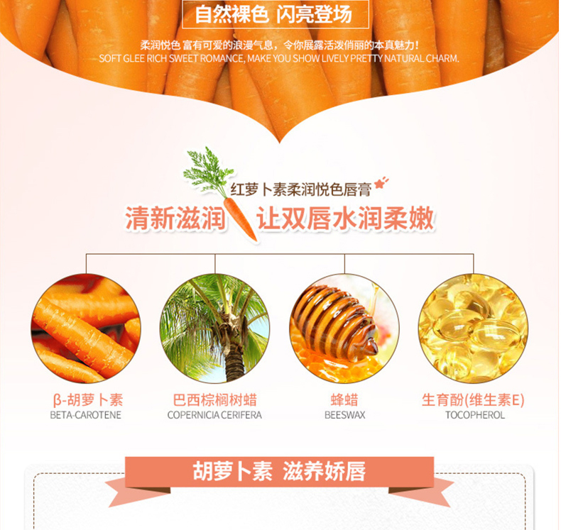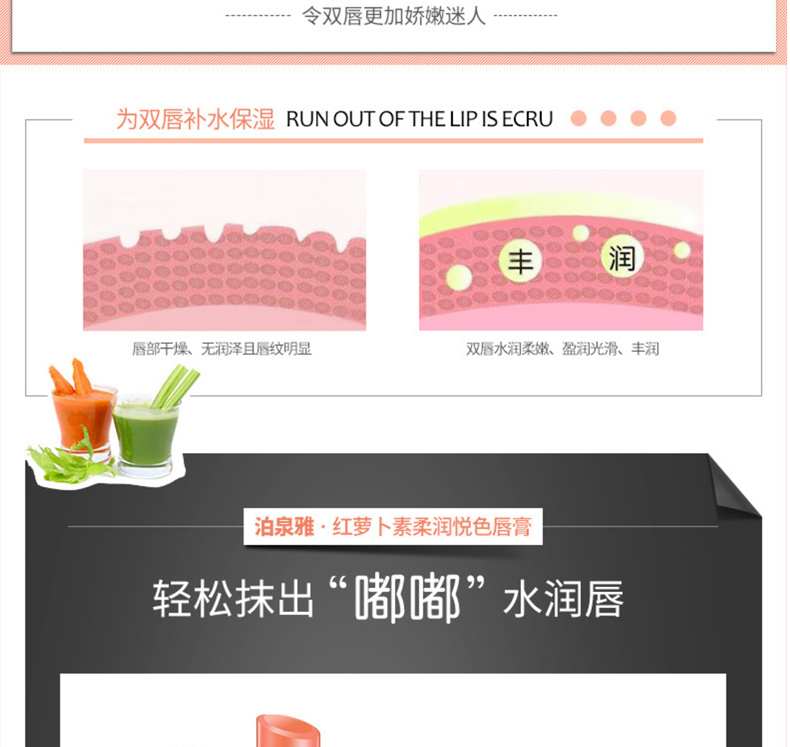 商品名称:泊泉雅 胡萝卜素柔润悦色唇膏 3.8g 补水滋润锁水