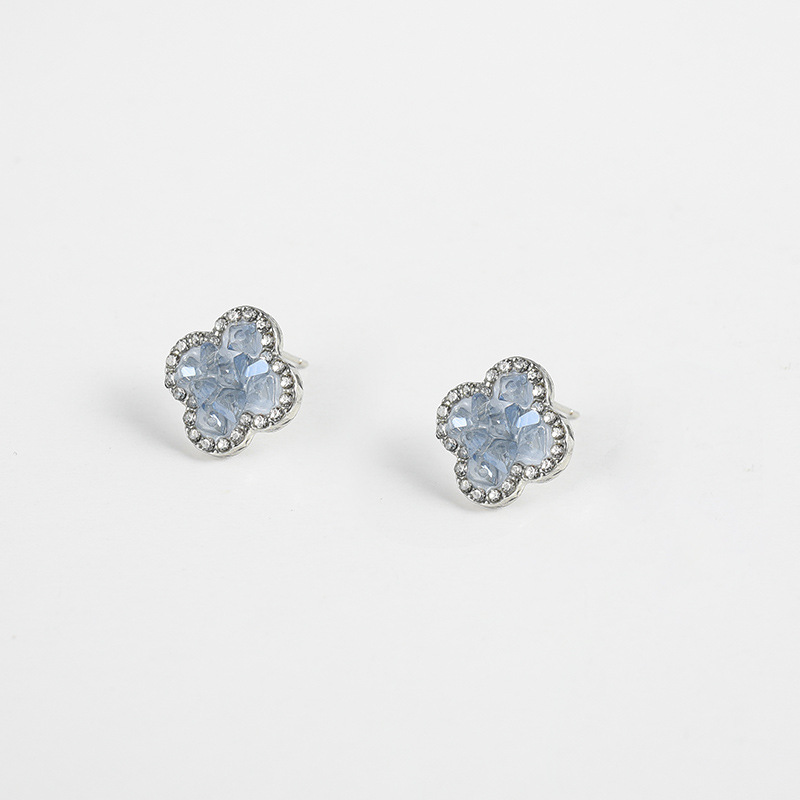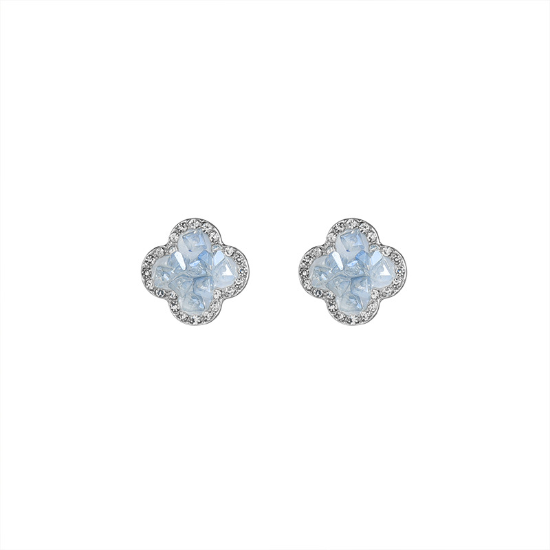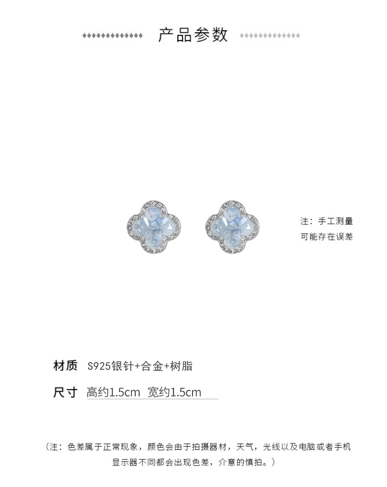 商品名称:彤彤兔 S925银针蓝色四叶草耳环爆款小清新耳饰女高级感花 朵耳钉