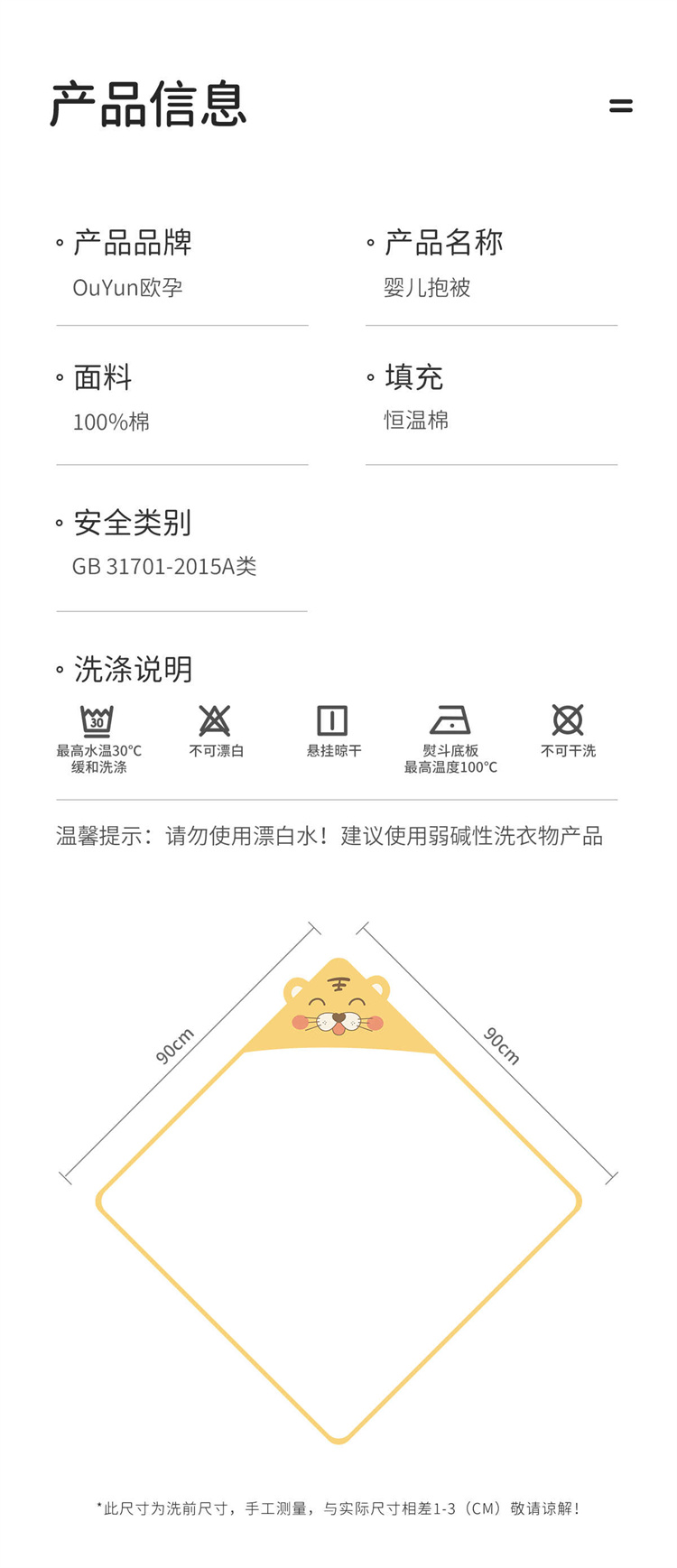 商品名称:欧孕宝宝恒温填充婴儿纯棉多功能抱被新生儿秋冬包被防惊跳新生儿包被外出被子