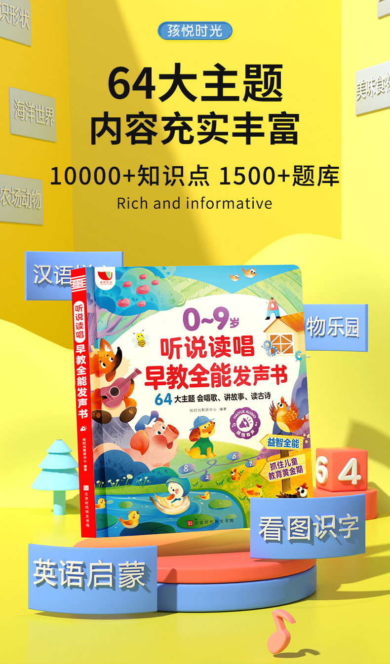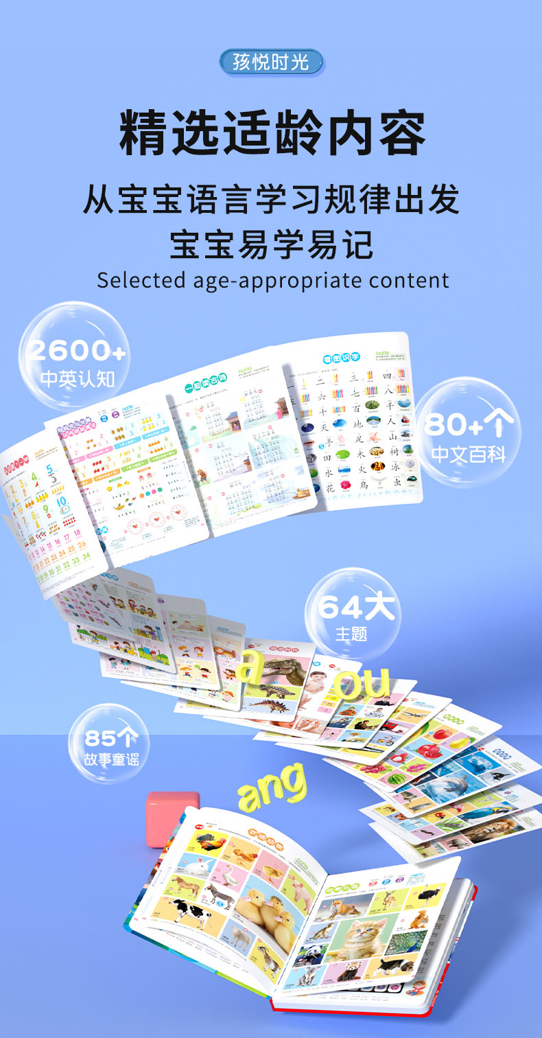 孩悦时光听说读唱早教全能发声书幼儿启蒙会说话的有声书识字0到9岁宝宝认知启蒙学习