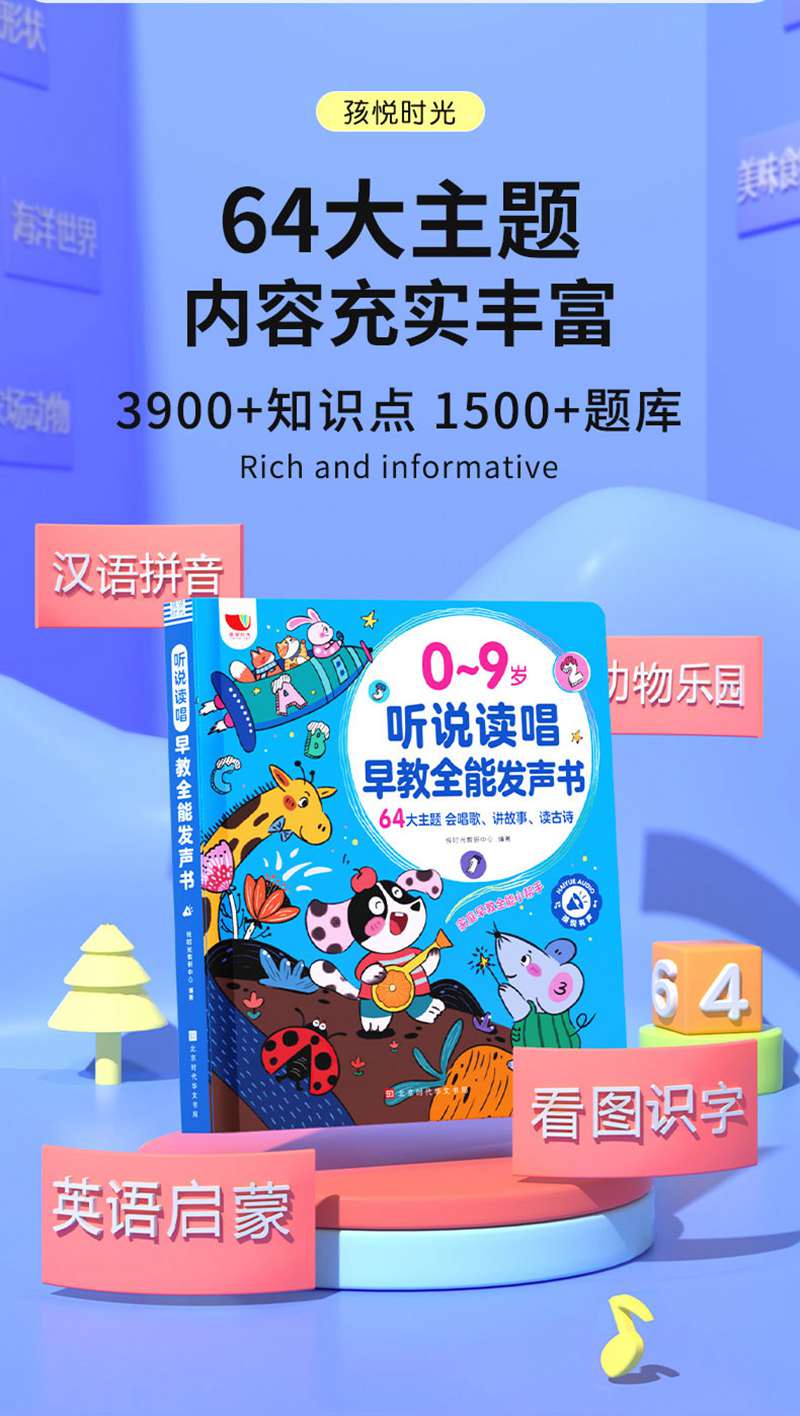 商品名称:孩悦时光听说读唱早教全能发声书幼儿启蒙会说话的有声书识字0到9岁宝宝认知启蒙学习