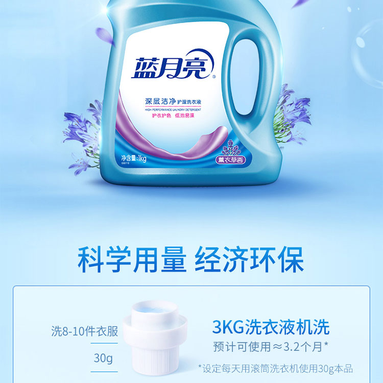 商品名称:蓝月亮 深层洁净(薰衣草)洗衣液1kg婴儿成人内衣内裤清洗剂