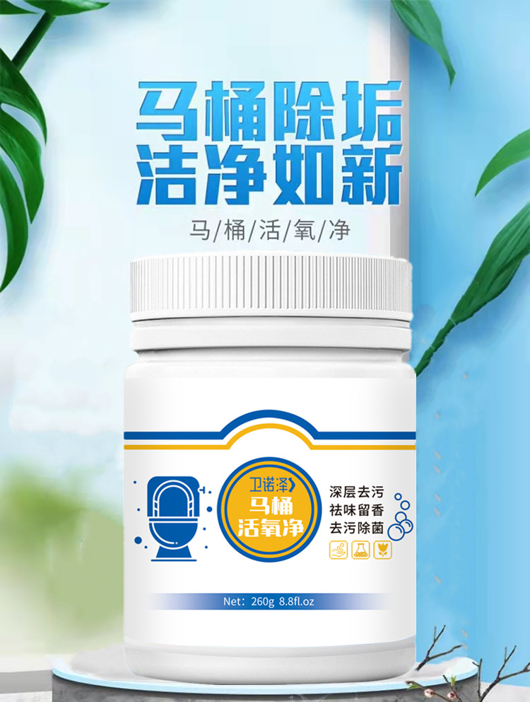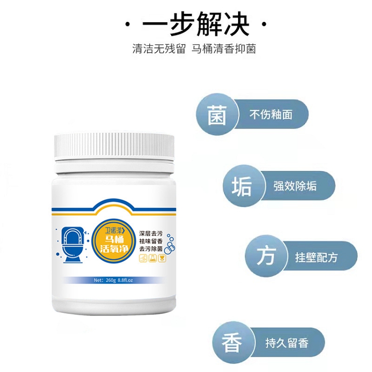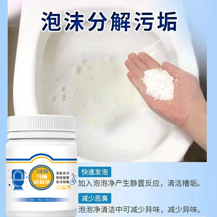 商品名称:卫诺泽马桶活氧净260克/瓶除尿垢祛除顽固污渍泡沫去污剂除臭祛黄去污清洗剂清洁