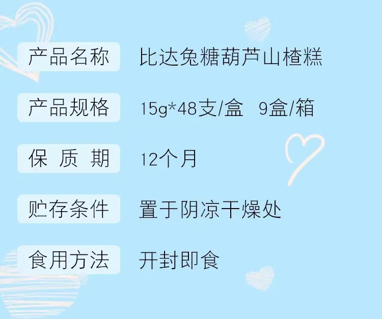 商品名称:【包邮】比达兔糖葫芦山楂糕15g膳食纤维休闲小零食山楂棒棒糖蜜饯糖果果糕