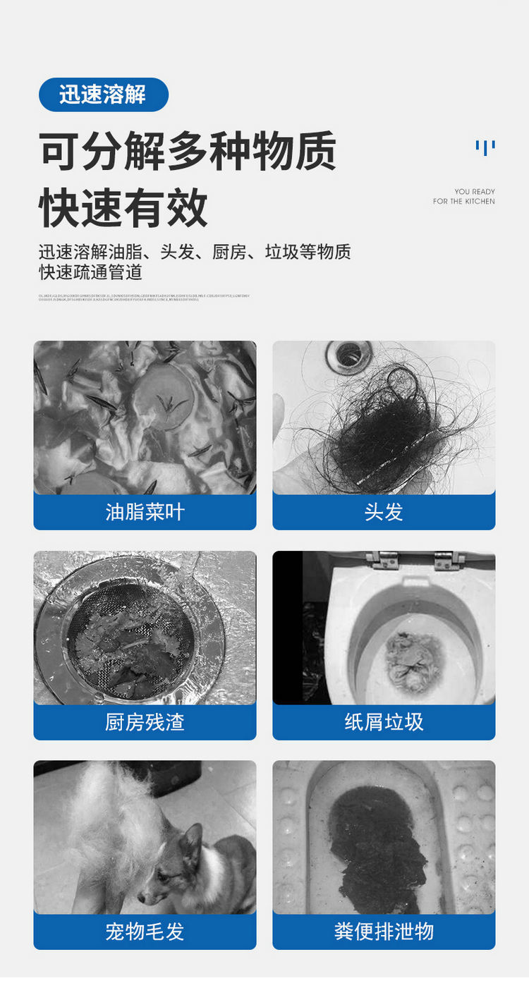 卫诺泽下水道疏通剂280克/瓶管道疏通剂马桶厕所疏通厨房油污地漏管道堵塞溶解