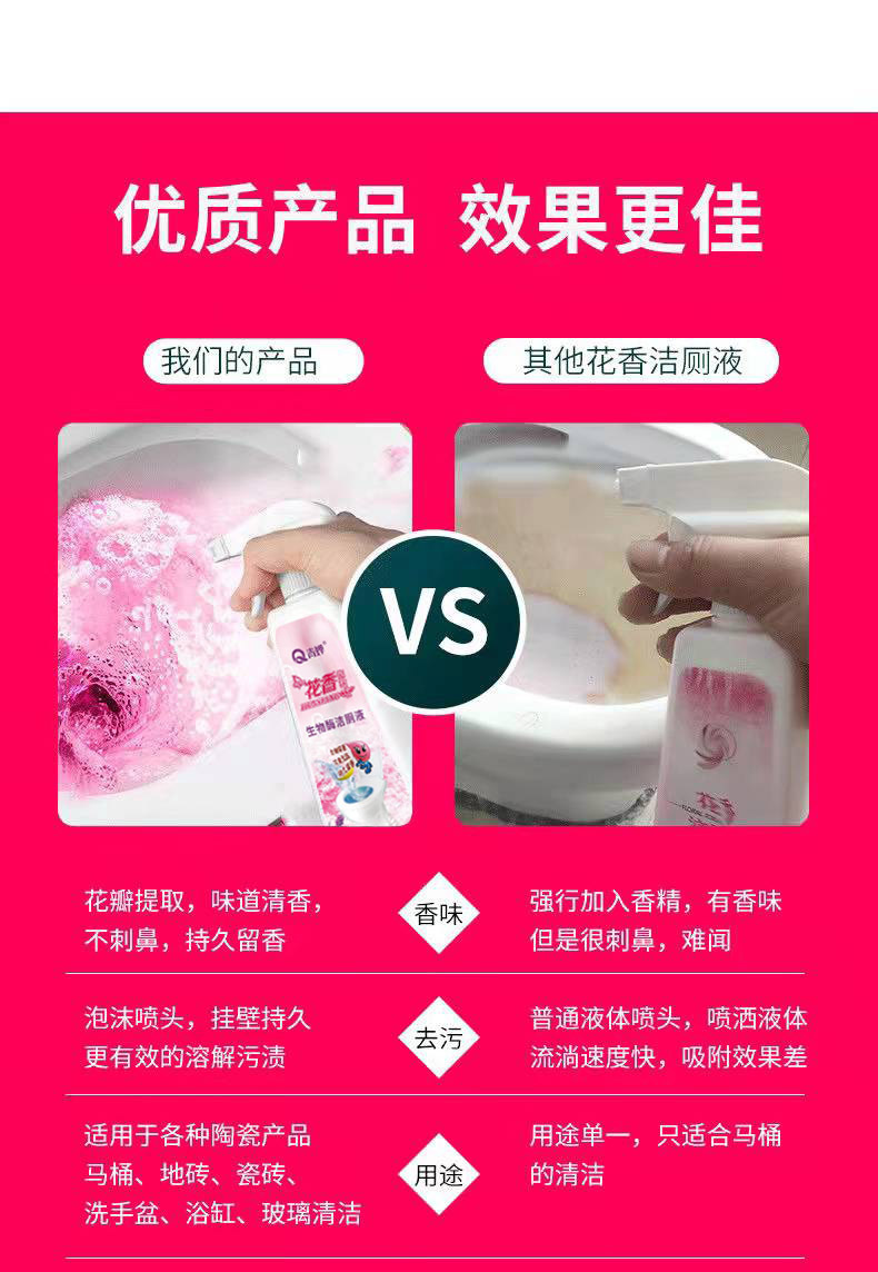 商品名称:青婵花香洁厕液马桶清洁剂厕所去渍除臭神器卫生间除臭泡沫洁测液500g/瓶