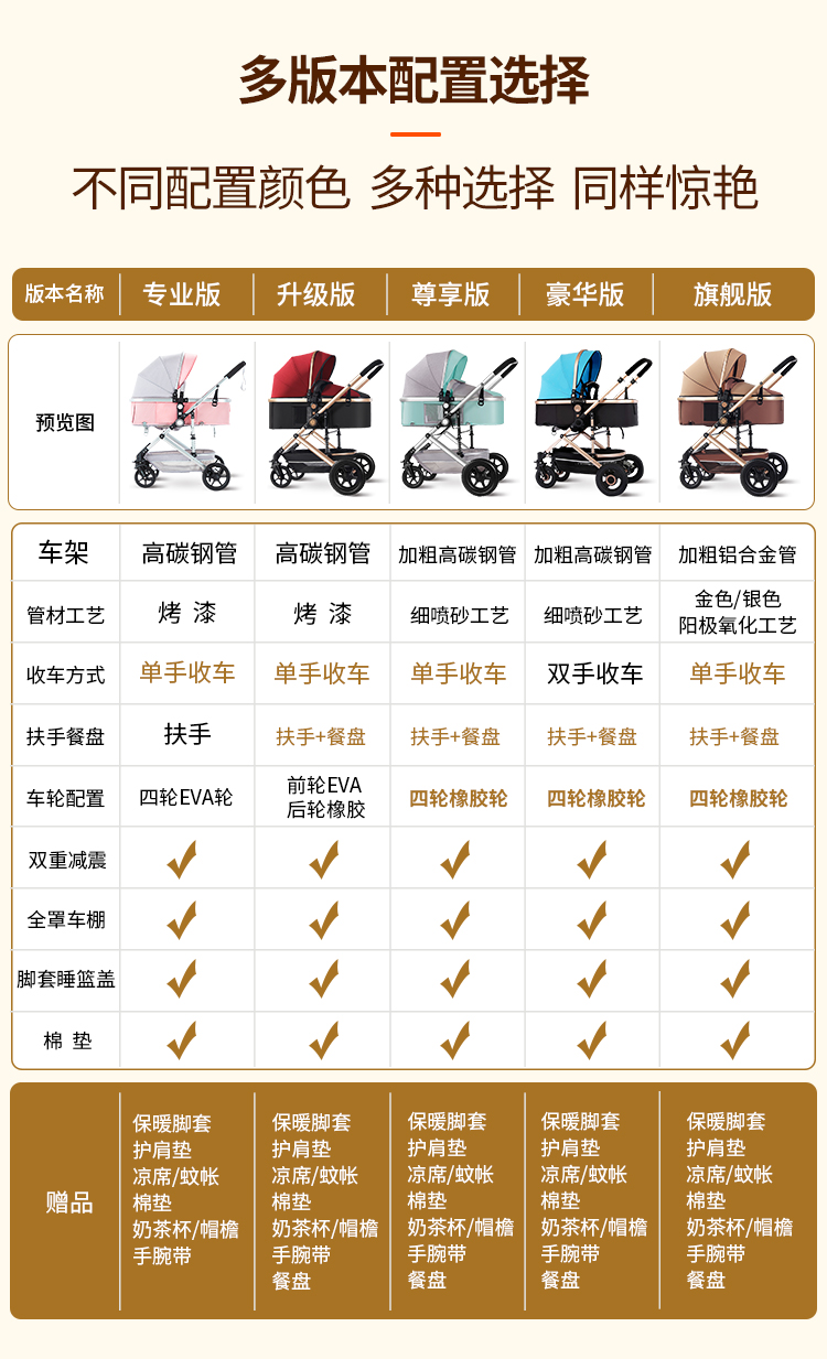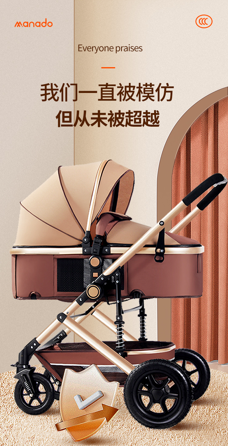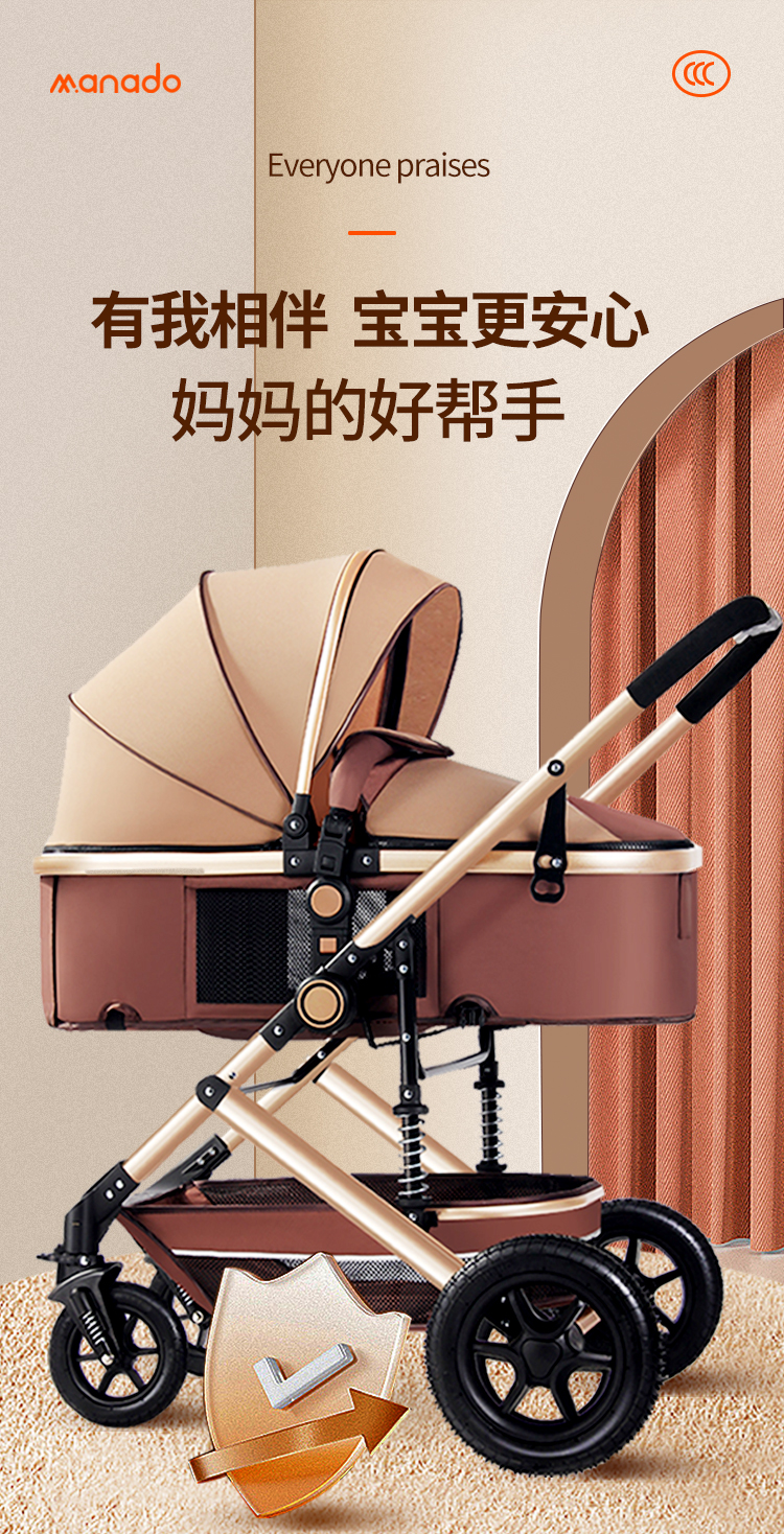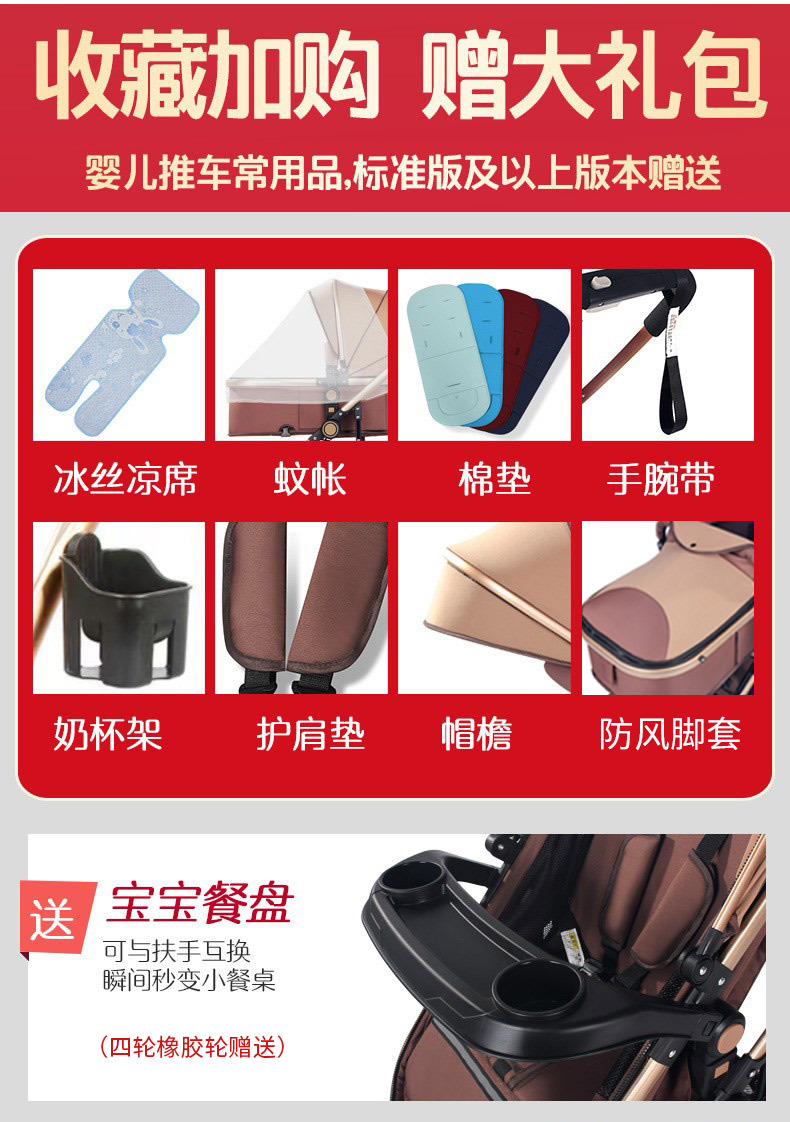 商品名称:爆款婴儿推车高景观轻便可坐可躺折叠避震双向宝宝新生儿童推车四轮童车