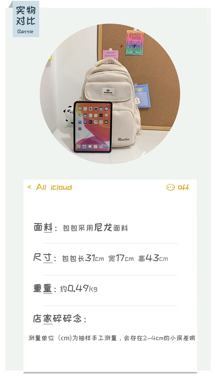 商品名称:彤彤兔 学院风书包大学生双肩包原宿风ulzzang时尚背包潮旅行