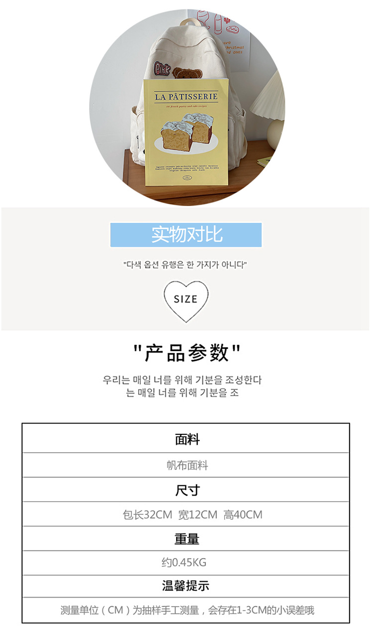 商品名称:彤彤兔 书包女韩版纯色小清新大学生背包校园ins风森系简约双肩包女