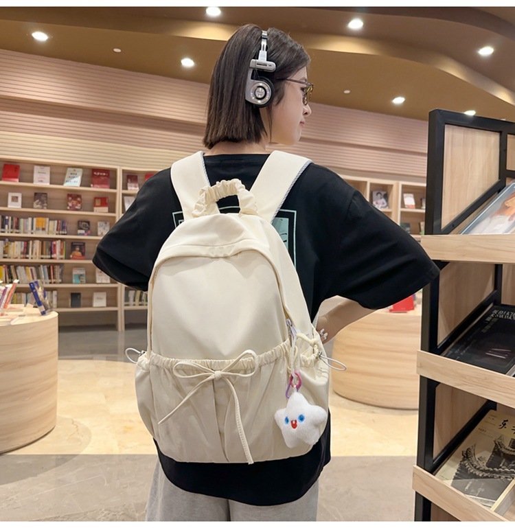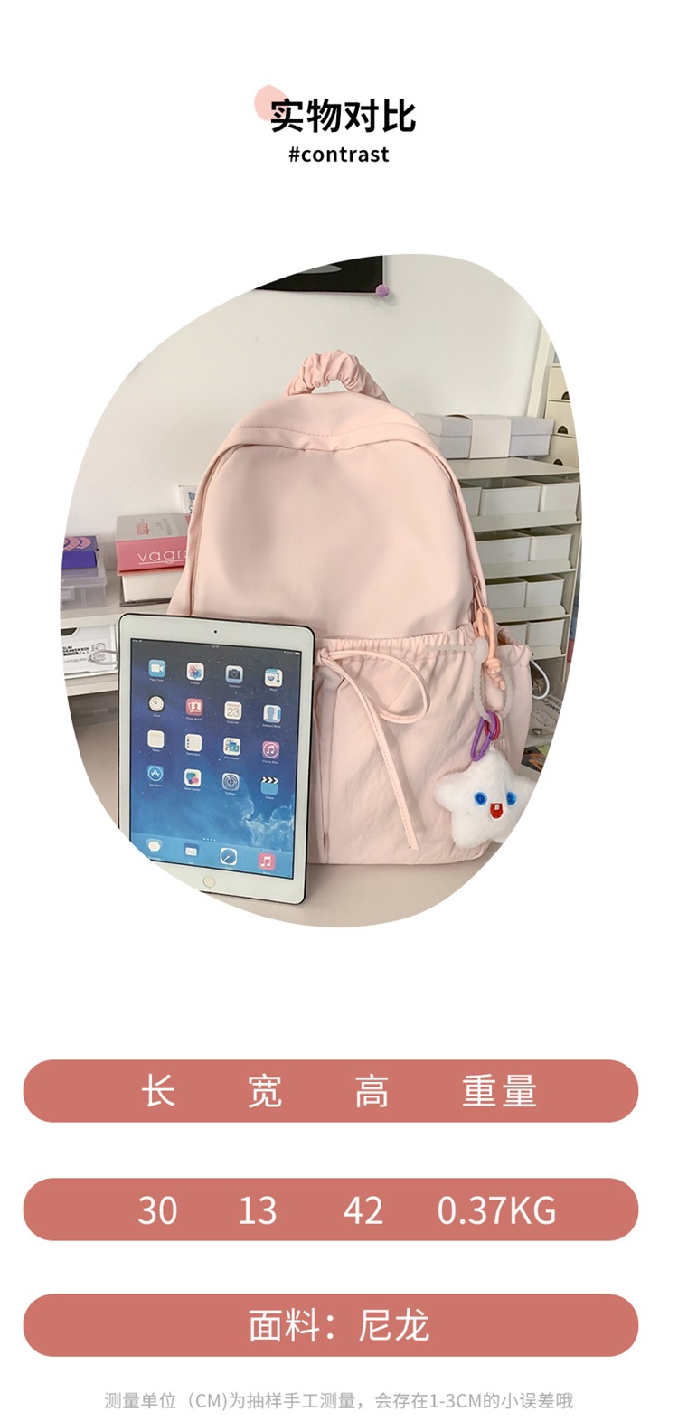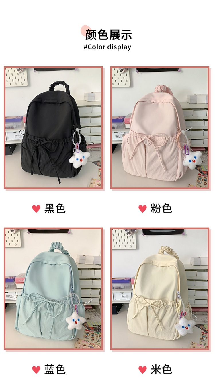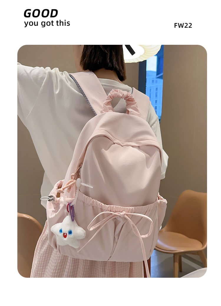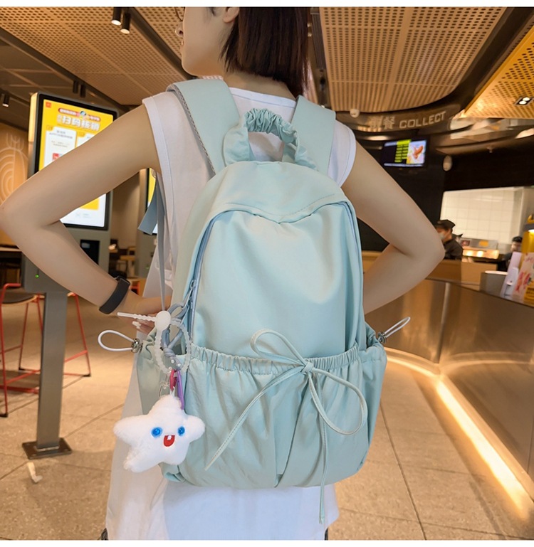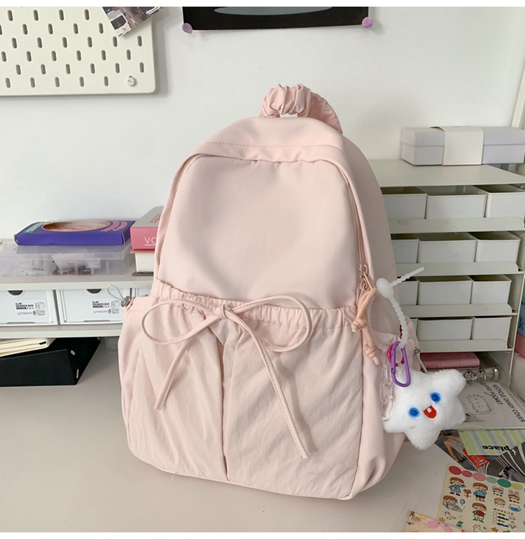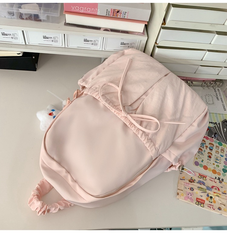 商品名称:彤彤兔 原宿风韩版纯色大学生蝴蝶结褶皱兜学生书包日常大容量 双肩包