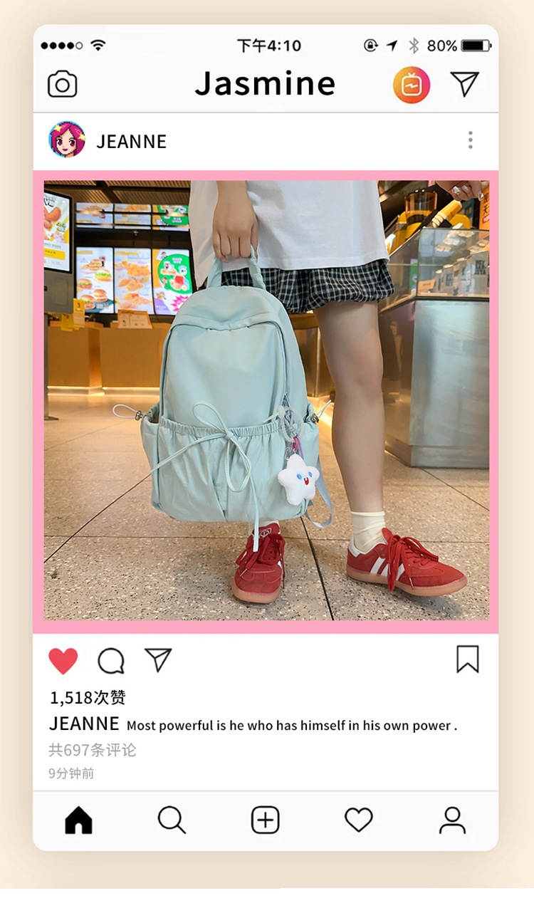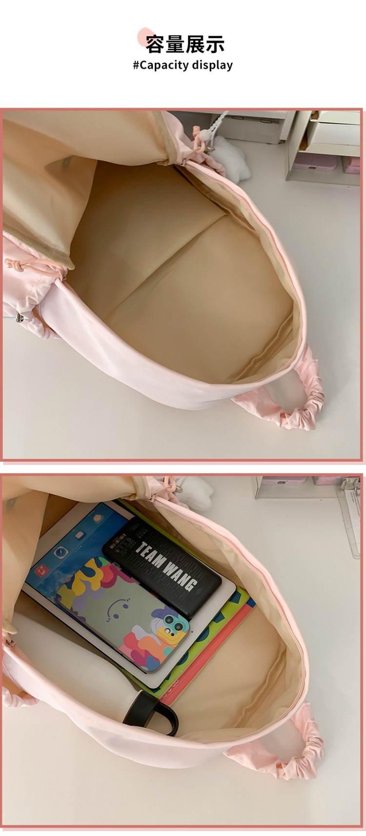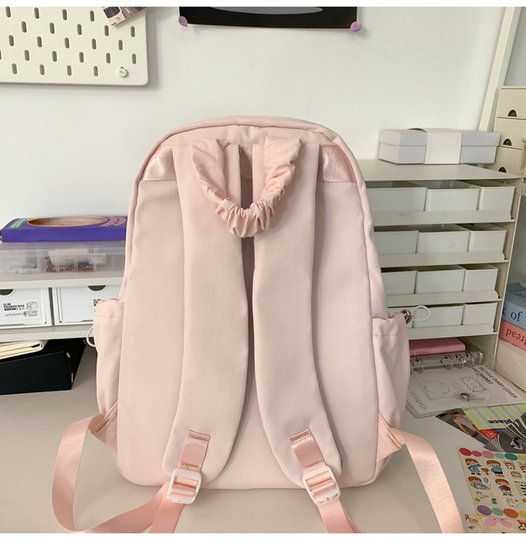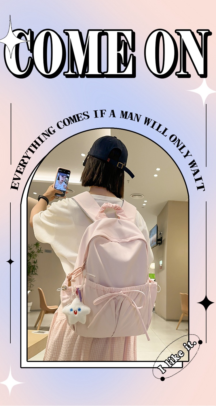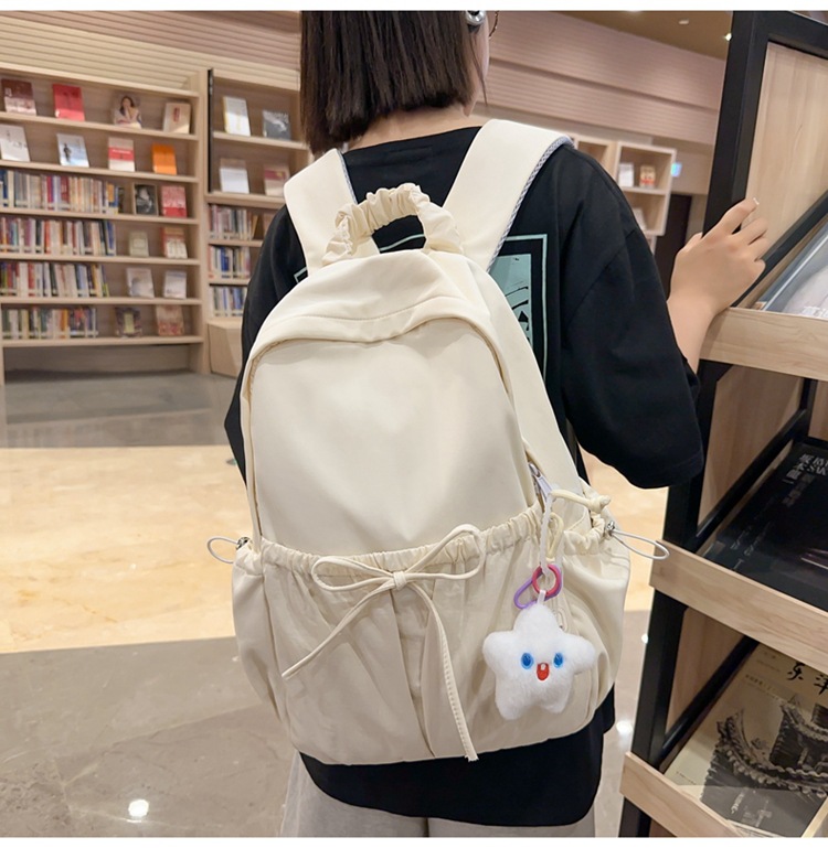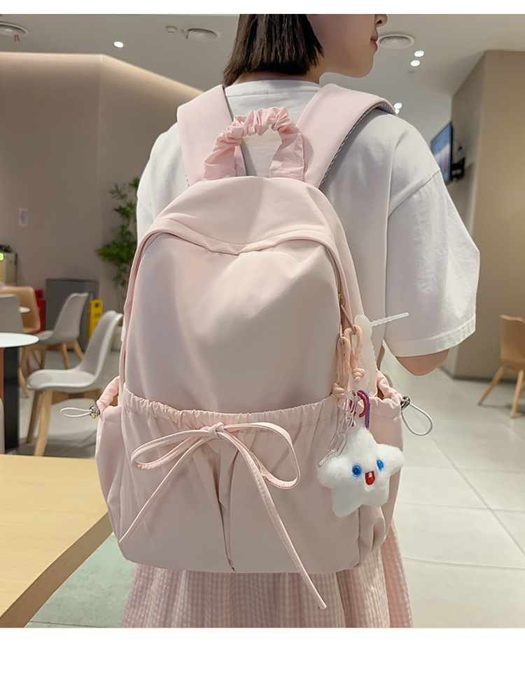 商品名称:彤彤兔 原宿风韩版纯色大学生蝴蝶结褶皱兜学生书包日常大容量 双肩包