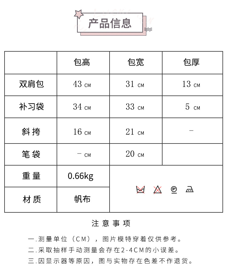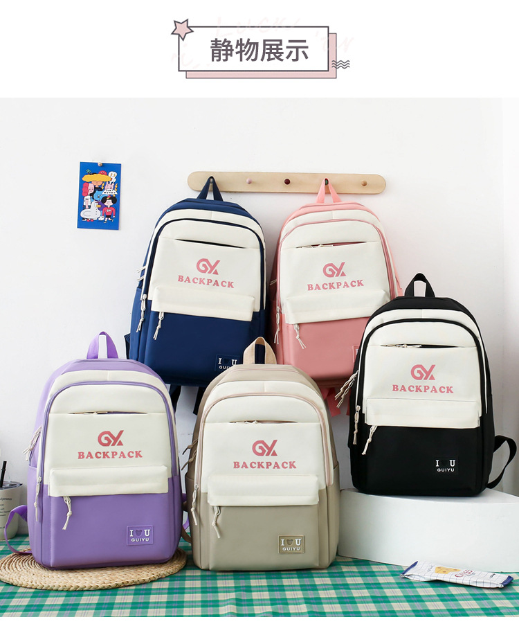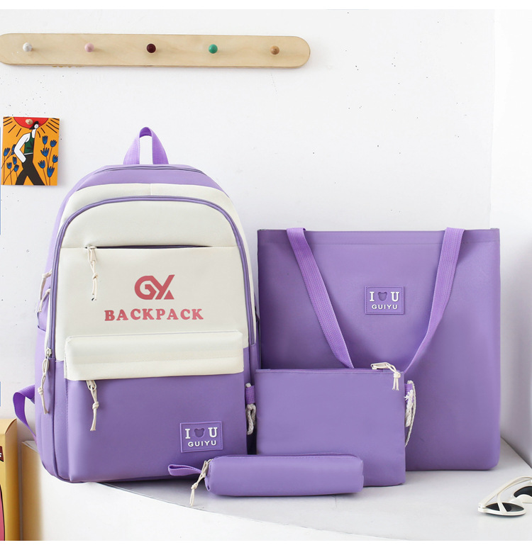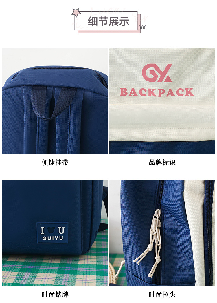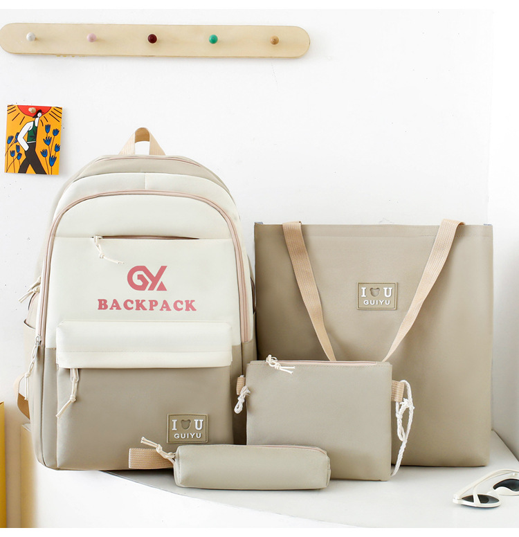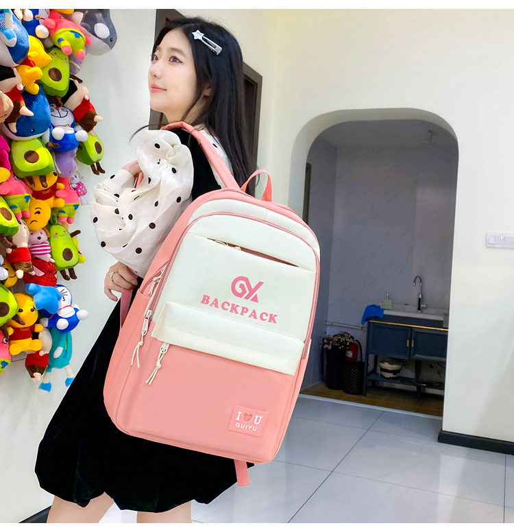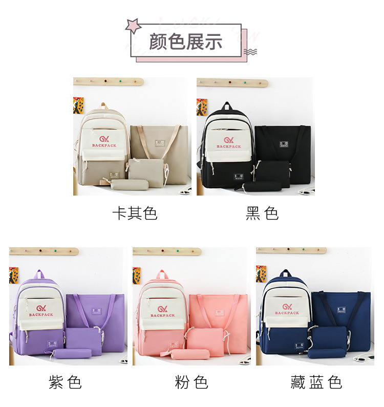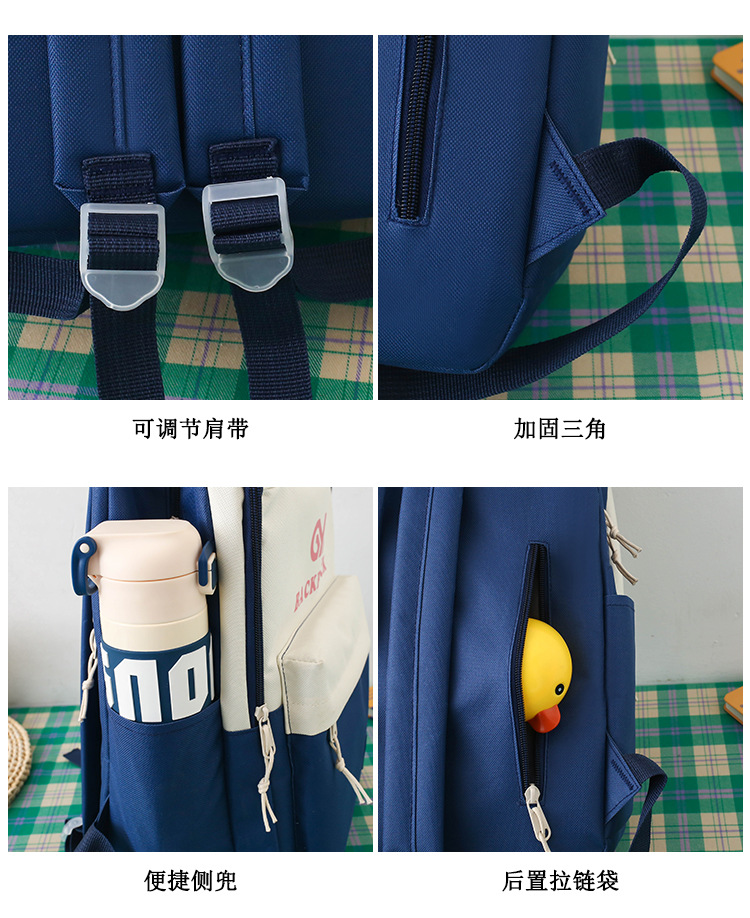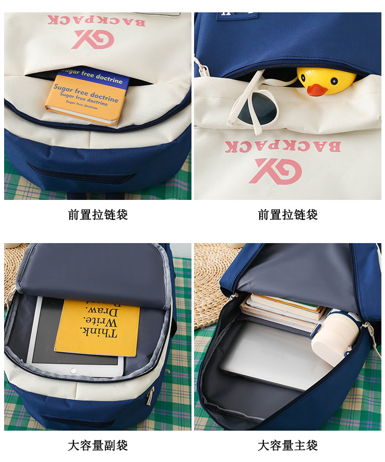 商品名称:彤彤兔 简约校园大学生学生背包四件套韩版校园大容量双肩包女校园新款书包
